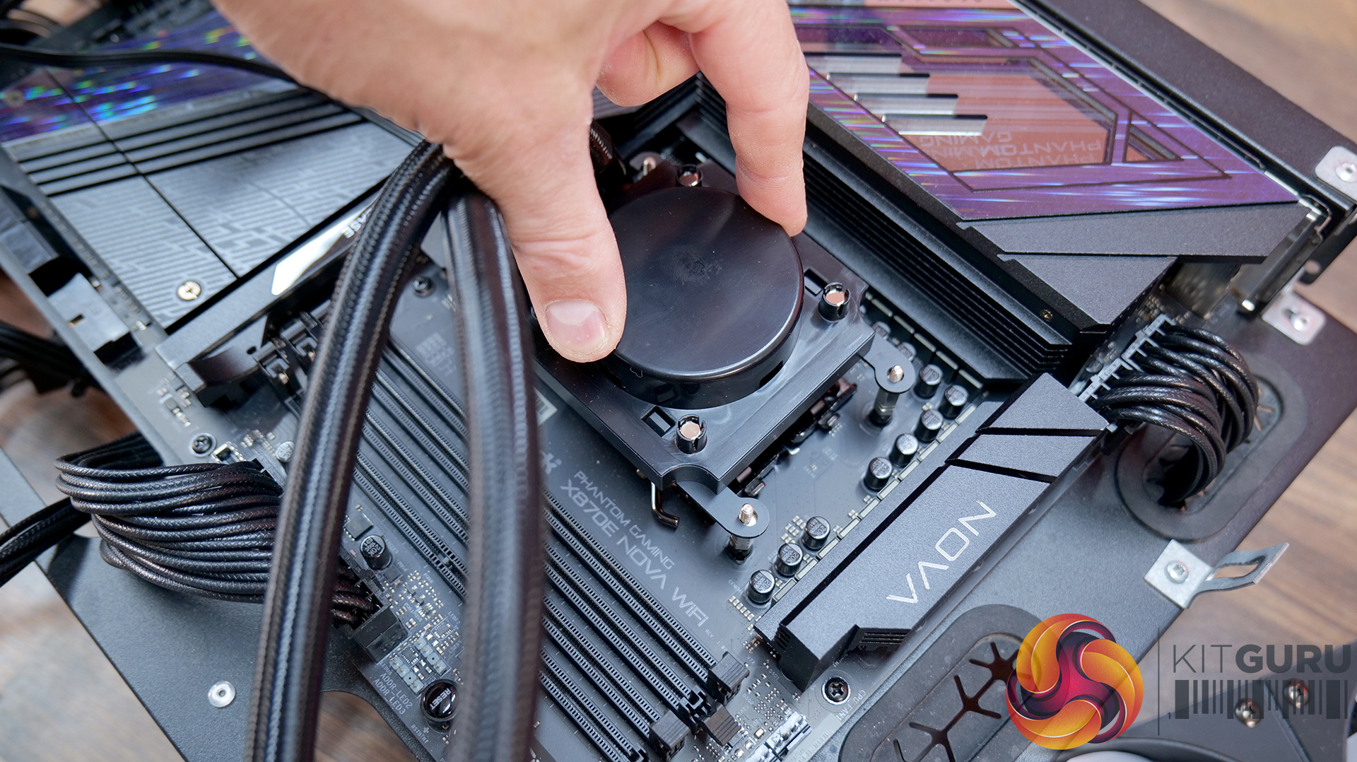 Our test system uses an ASRock Phantom Gaming X870E Nova WiFi motherboard, so I'll quickly run you through the installation process on AM5. The installation process for AM4 will be the same, Intel is slightly different as it requires a Gamdias backplate to be installed; however the cooling hardware installation is simple on either platform. There is a lot of wiring, so cable management can be tricky.