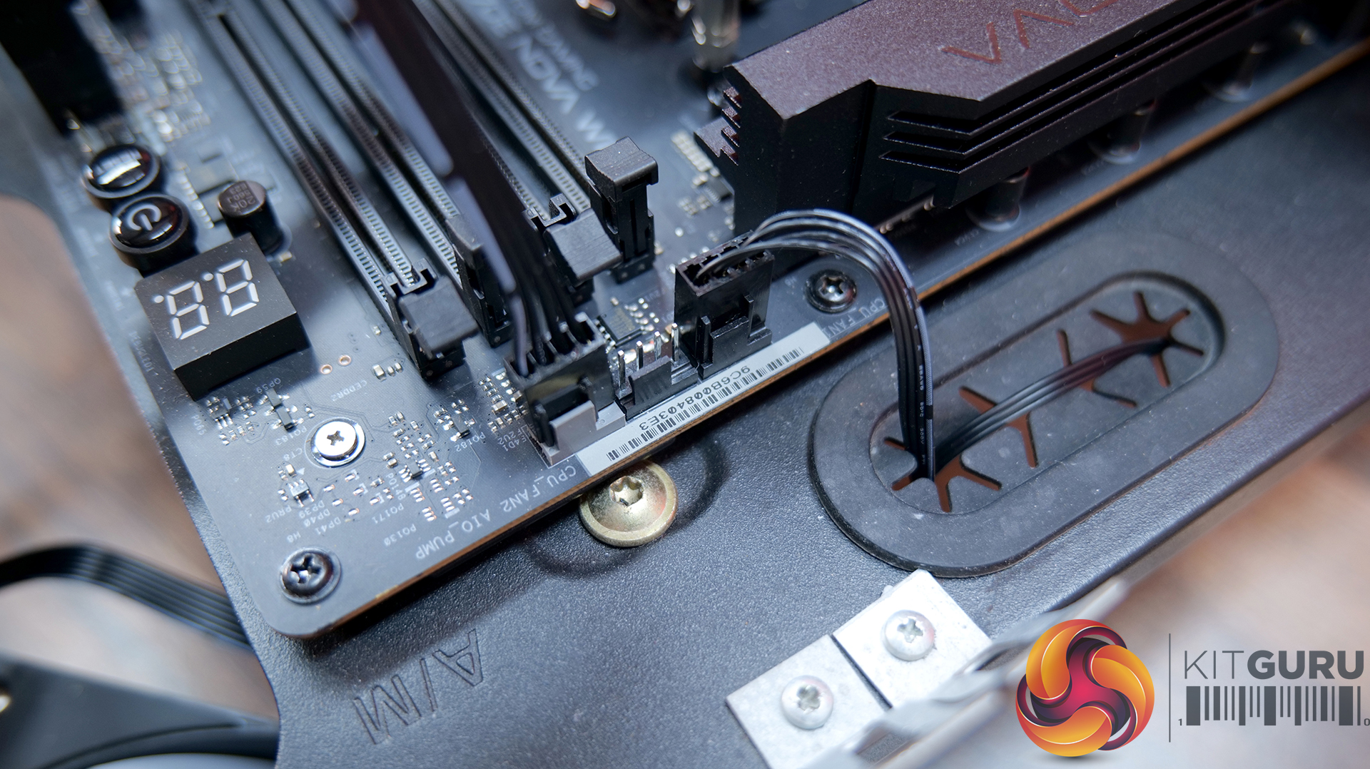 For the wiring, connect the 4-pin PWM pump power cable to a motherboard PWM fan header, usually labelled CPU_OPT or AIO_PUMP. Connect the 4-pin fan power cable to another motherboard PWM fan header, usually labelled CPU_FAN.
