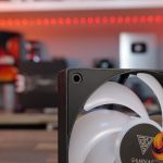 A key feature of the fans is the option to change the fan blade. Forward and reverse blades are included in the pack, and it’s a simple case of pushing one blade off and clipping the replacement blade in place. When the blade is removed, you can see the motor windings, the PCB and LEDs for the ARGB lighting, too.