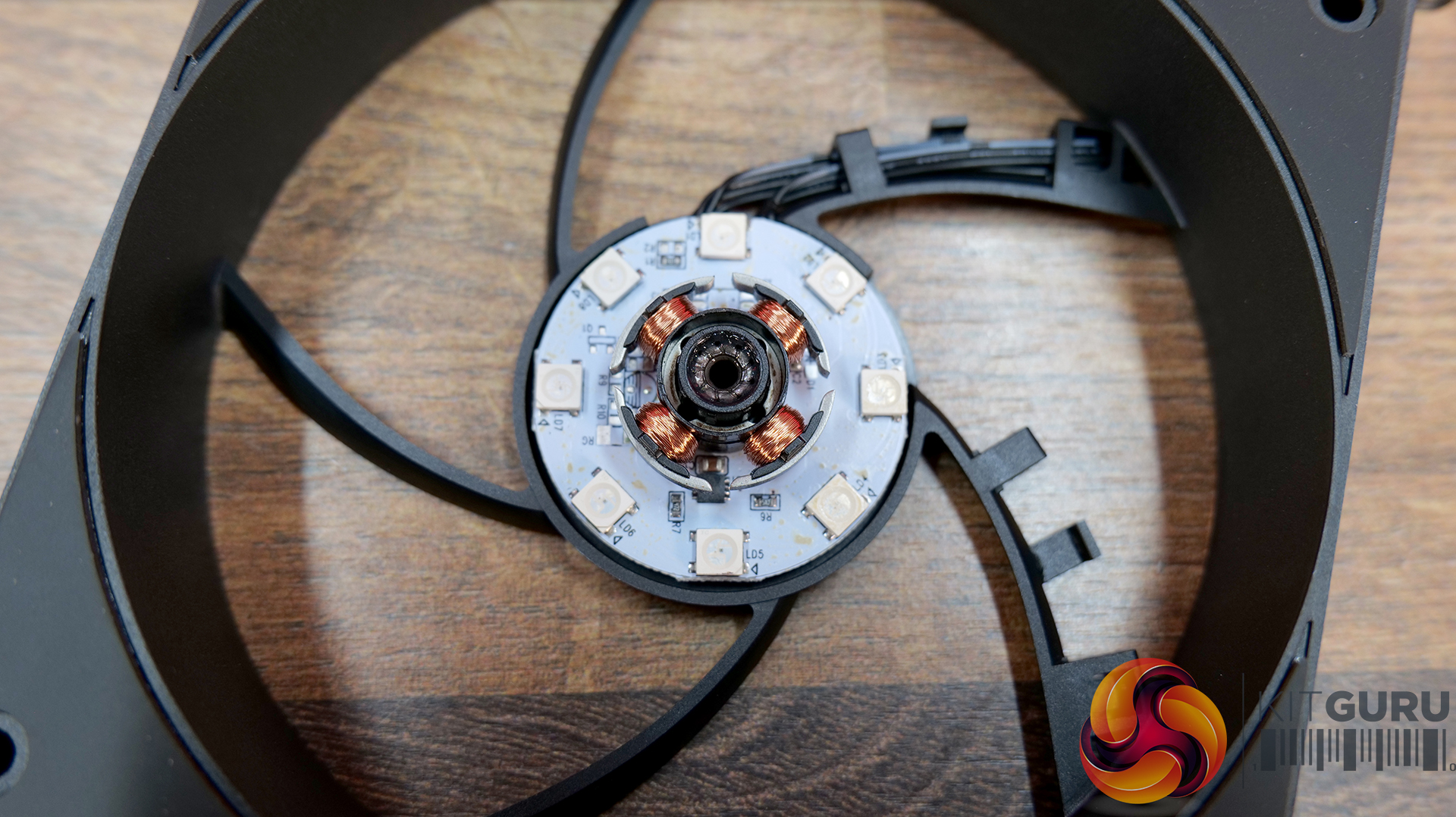 A key feature of the fans is the option to change the fan blade. Forward and reverse blades are included in the pack, and it’s a simple case of pushing one blade off and clipping the replacement blade in place. When the blade is removed, you can see the motor windings, the PCB and LEDs for the ARGB lighting, too.