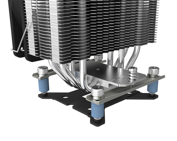 The included 120mm fan features eight rubberised dampeners on all corners and both sides, allowing vibration reduced mounting of the fan in either pull or push configuration. The Fan is PWM controlled with a speed range of 700 to 1800 RPM and capable of pushing 76.16 CFM air at maximum RPM. ID-Cooling has included an extra set of fan retaining clips so users can add another fan for push-pull configuration. ID-Cooling claims noise levels measure 15.2 to 32,5dBA so it's reasonably quiet.