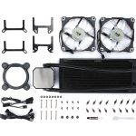 SR all-in-one coolers are equipped with an Aluminium radiator, which is common of AIO coolers, with a copper micro-channel cold plate. Braided sleeving covers the tubing for a premium-looking finish and rotating fittings are used on the tubing at the CPU block end. The InWin SR series is available in both 240mm and 360mm radiator versions (SR24 and SR36) with AJF120 RGB fans offering a speed range of 500-2500 RPM. RGB lighting can be configured and controlled by motherboard RGB software via a standard 3-pin 5V connection.