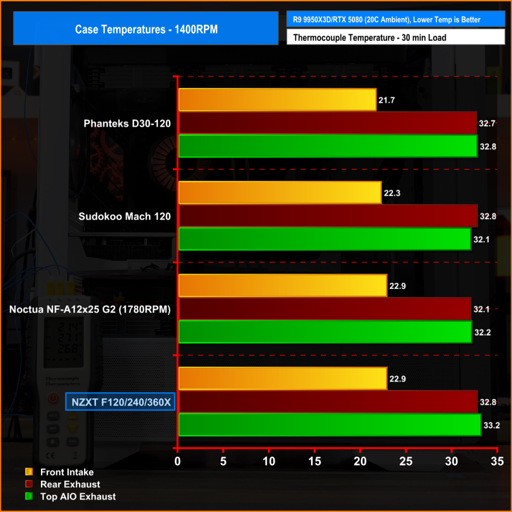 This methodology ensures a consistent, real-world comparison of each fan’s thermal efficiency, noise performance, and airflow characteristics.