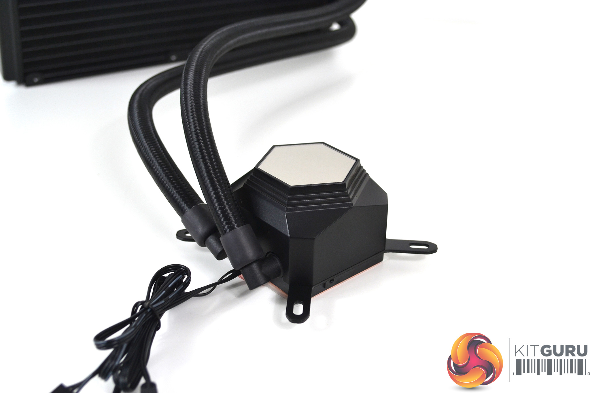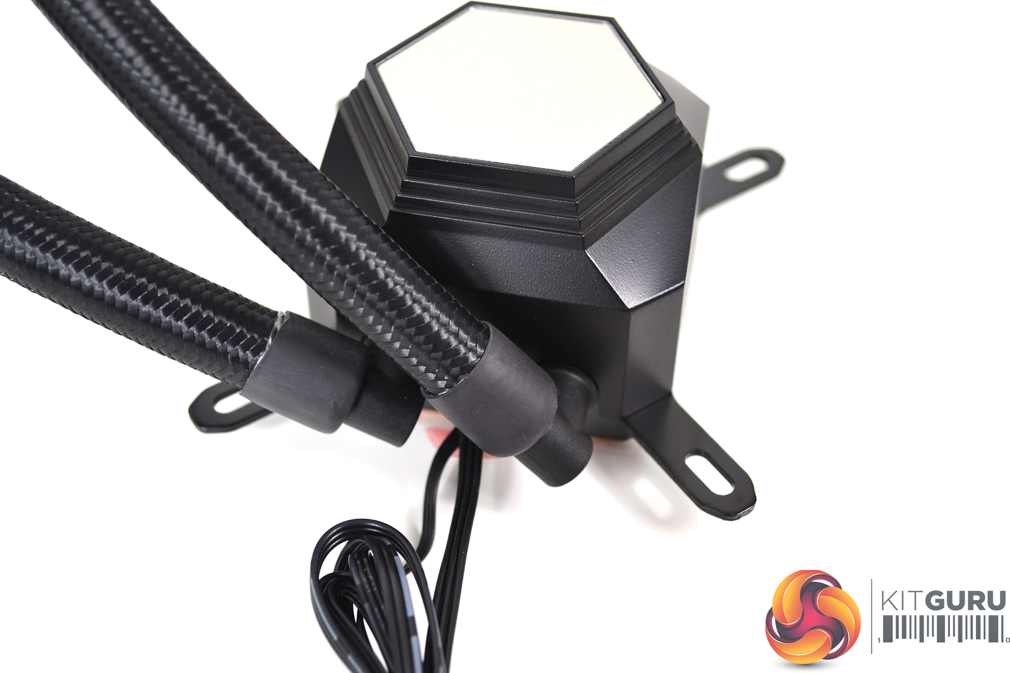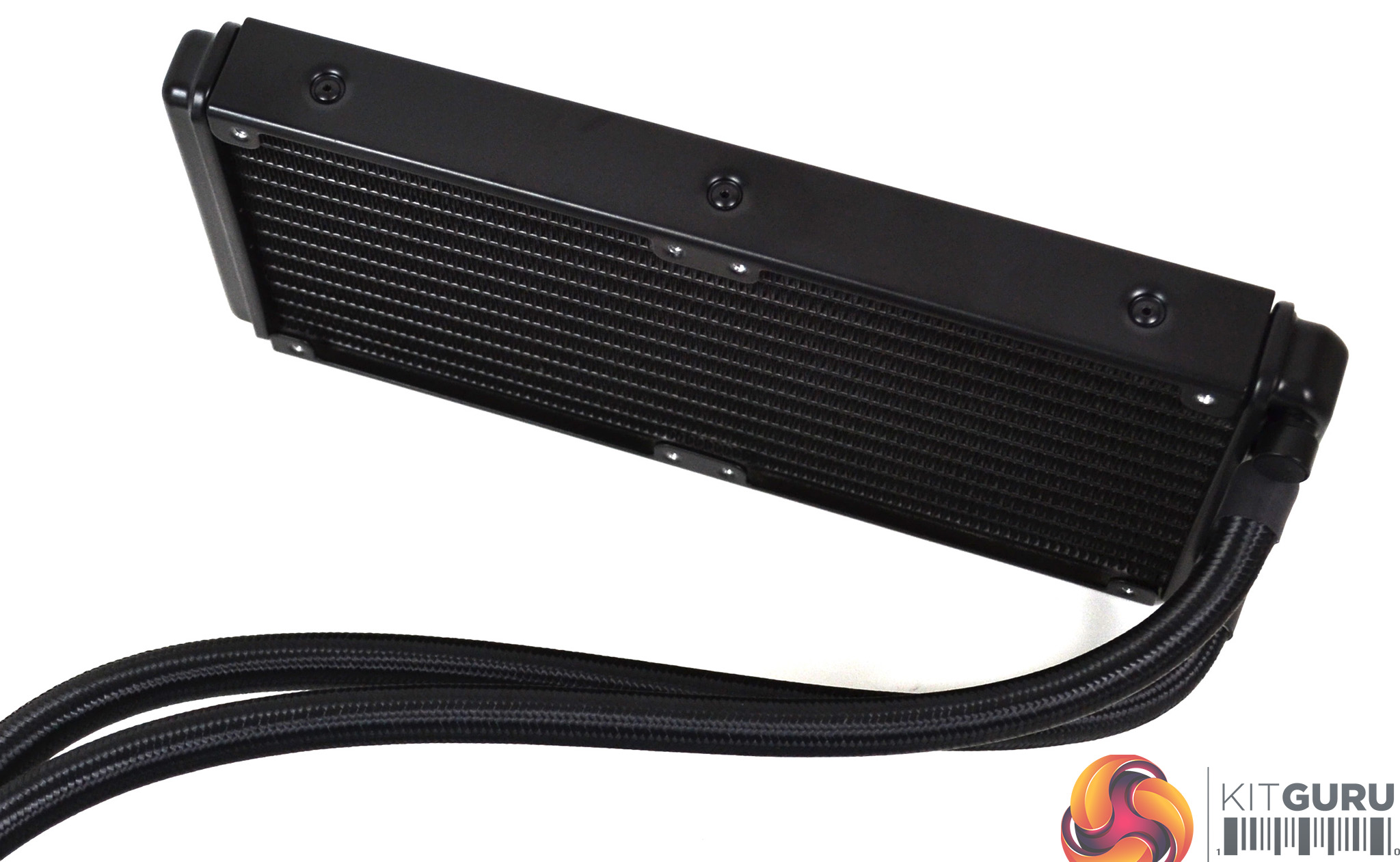 The radiator tubing has a generous length to it at approximately 395mm and is covered in high quality black braided sleeving. On the radiator end, the tubing is fixed in position. However, at the pump end, there are rotating fittings to aid with installation.
