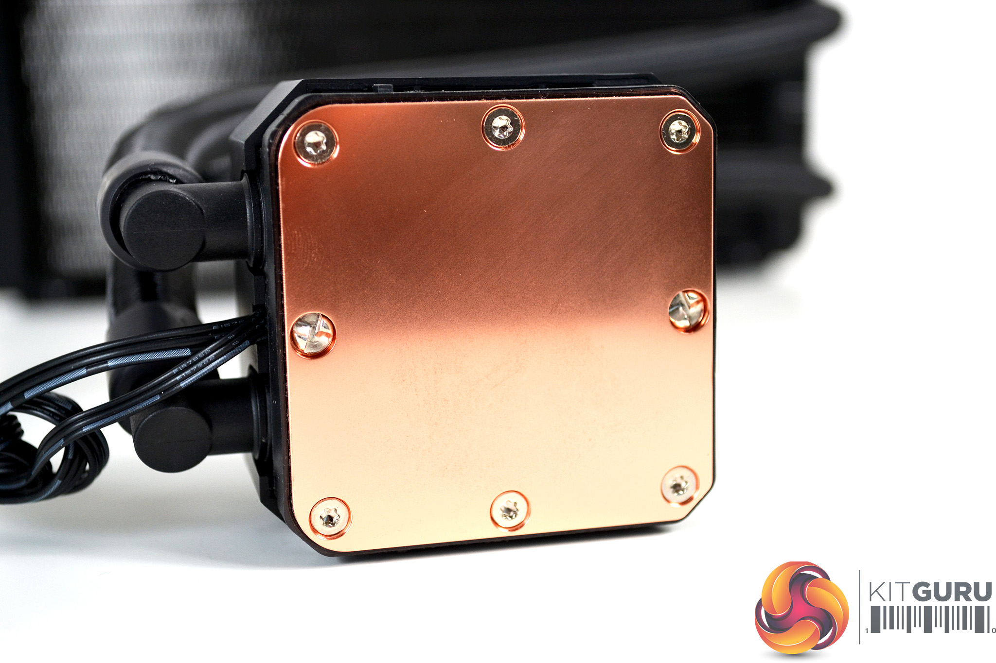 The underside of the CPU block features a large square design and a copper microchannel thermal transfer plate with Torx screws securing it to the pump housing, along with two security screws. The size and shape of the thermal plate looks good and should fully cover all desktop CPU integrated heat spreaders, which not all coolers manage to achieve.