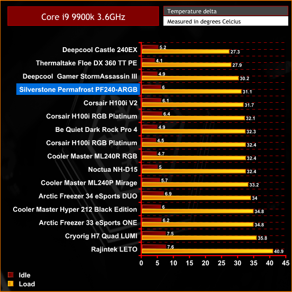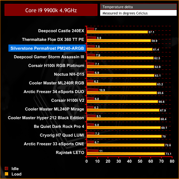 Again, the Permafrost PF240-ARGB is holding on. In fact, in our initial overclocked test it has jumped up a place into third position.