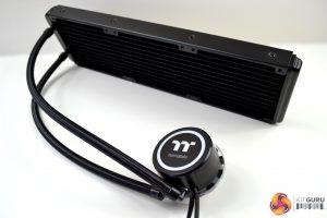 Moving onto the radiator, that too looks great. There isn’t much that can look wrong about an all-black Asetek patented radiator, though, to be fair. The dimensions of the radiator are 390mm long, 120mm wide and 27mm deep without fans fitted, increasing to 52mm thick with fans installed.