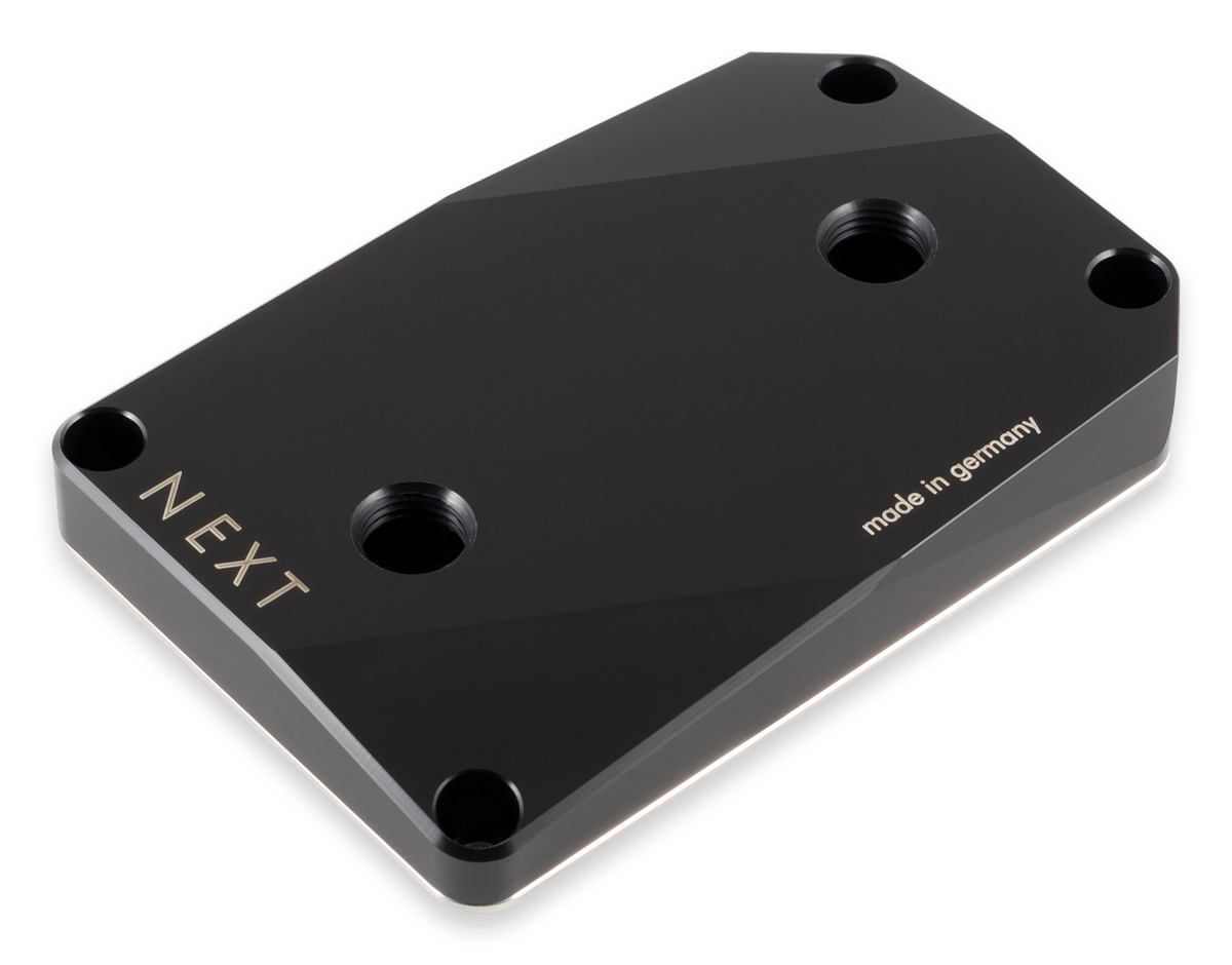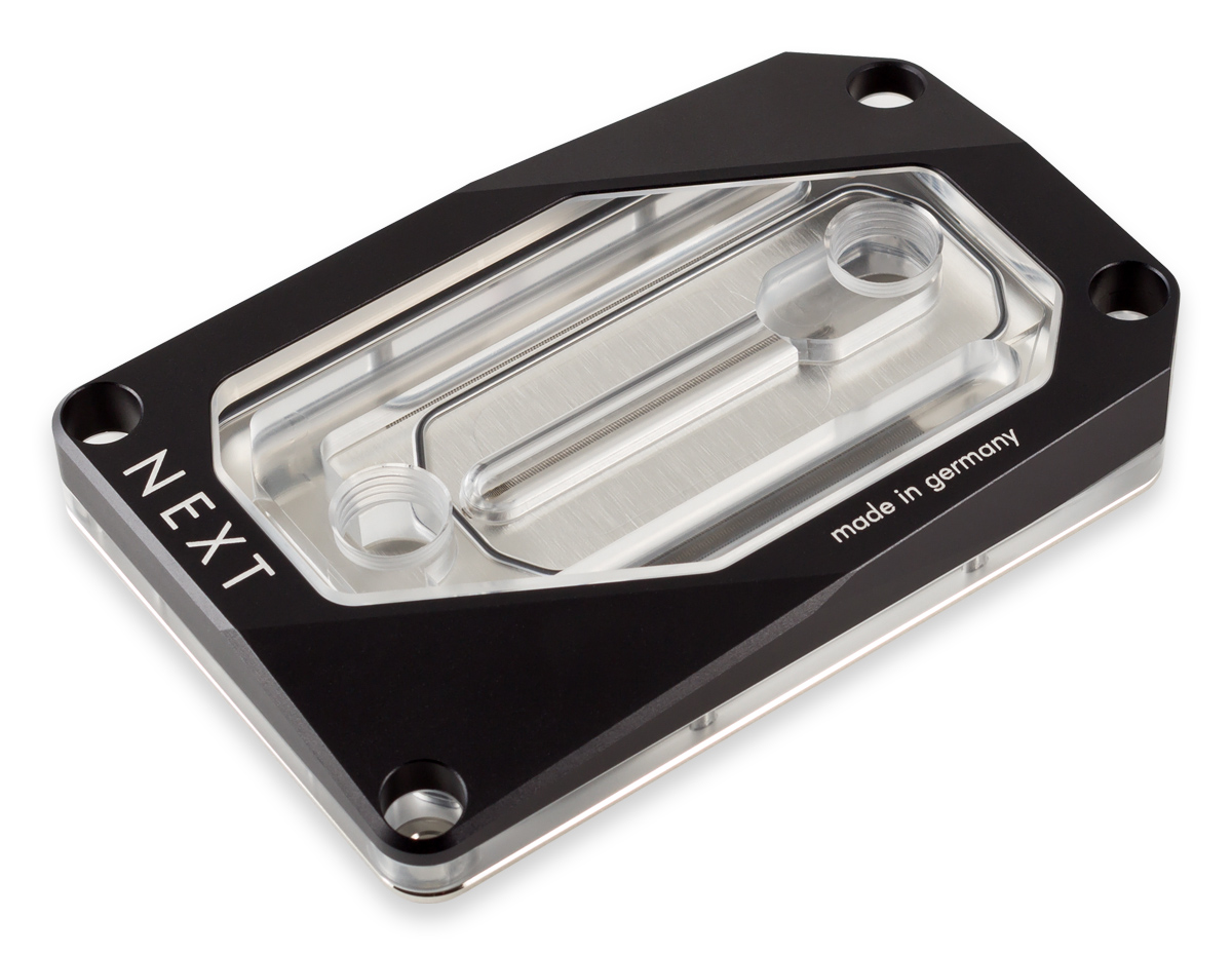 Offering a massive 51x45mm copper base, with 0.2mm microstructure spacing, “all” the components of the Cuplex Kryos Next sTRX4 FC water block are CNC-manufactured in Germany. The contact surface is nickel-plated and then polished to ensure the best possible heat transfer. Additionally, the 69mm spacing between the G1/4 threads should allow users complete freedom when it comes to choice of fittings.