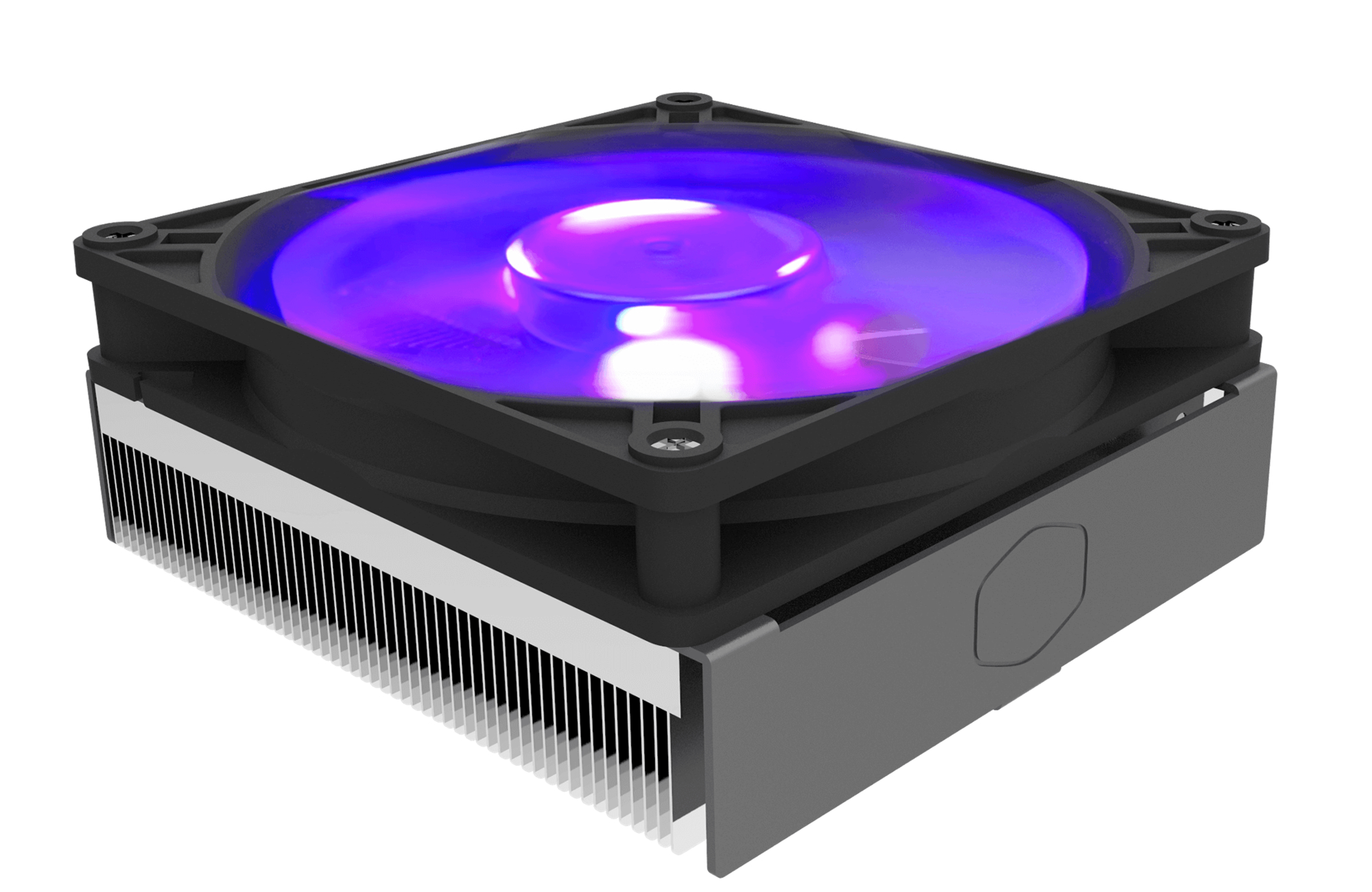The fan is connected to the motherboard with a 4-Pin (PWM) interface. Fan noise levels, according to Cooler Master's own testing, range from 6dBA to 28dBA, and its MTTF is of 40000 hours. There's also RGB lighting on the fan, which can be controlled through a supported motherboard or via the included wired controller.