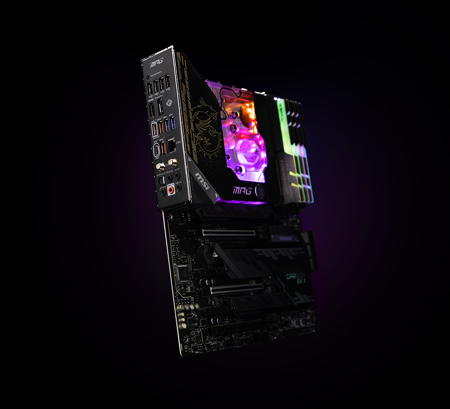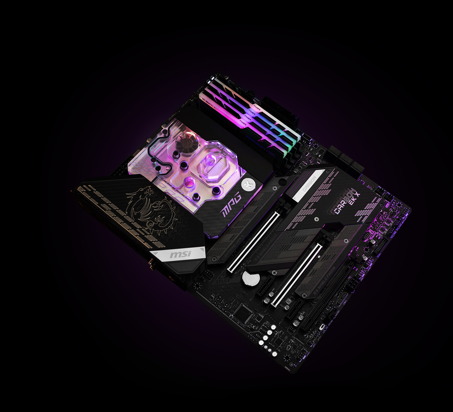 Featuring a 16+1+1 Duet Rail Power System, the MPG Z590 Carbon EK X motherboard was designed to offer users enhanced overclocks to extract every bit of power from compatible Intel processors. As more heat is generated with overclocking, a good cooling solution is needed to control the temperatures. Thanks to the custom-designed Quantum monoblock, users won't have to worry about the extra heat from the power delivery system and CPU. Moreover, this monoblock comes with an integrated flow indicator to monitor the flow, allowing users to configure the pump accordingly.
