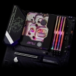 The base of the monoblock uses nickel-plated electrolytic copper, and the top is made of CNC-machined cast acrylic glass material with a carbon fibre pattern in the lower area and a black POM piece on the right side to cover LEDs hotspots. The motherboard features a 3-pin addressable D-RGB LED header that you can use to light up the ARGB LED strip equipped in the block. Additionally, users can also make use of Mystic Light RGB software to synchronise the RGB lighting of all of their compatible devices and components. Nickel-plated brass screw-in standoffs and the I/O shield are pre-installed out-of-the-box for an easier mounting process.
