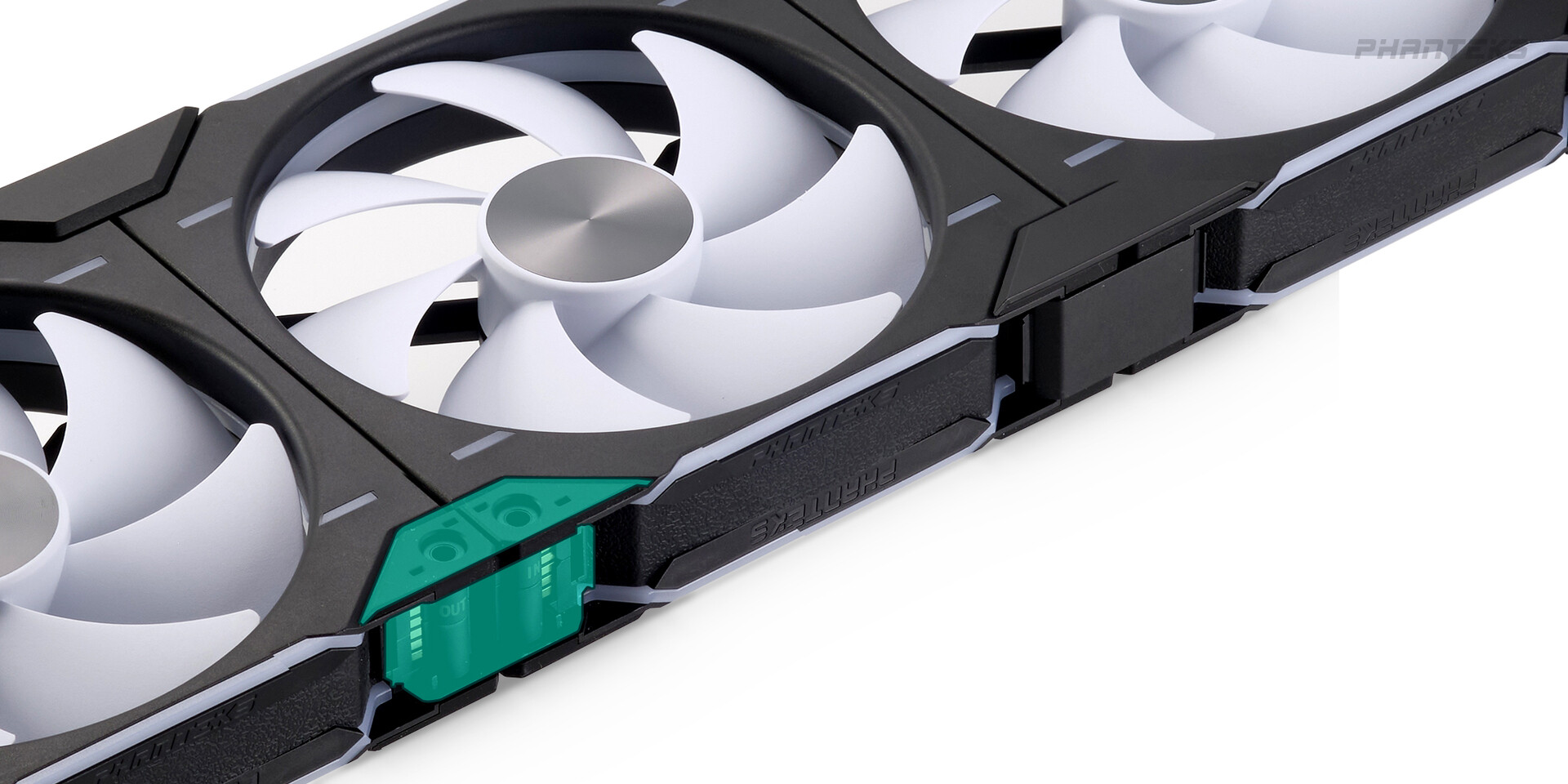 Phanteks has devised bridge connections and screw cover plates that allow several D30 fans to be combined effortlessly. This approach eliminates cable clutter and combines many fans into a cohesive, aesthetically appealing box, resulting in a cleaner setup. Moreover, the D-RGB lighting on the D30-140 fans is integrated on all sides of the fan's frame and blades.