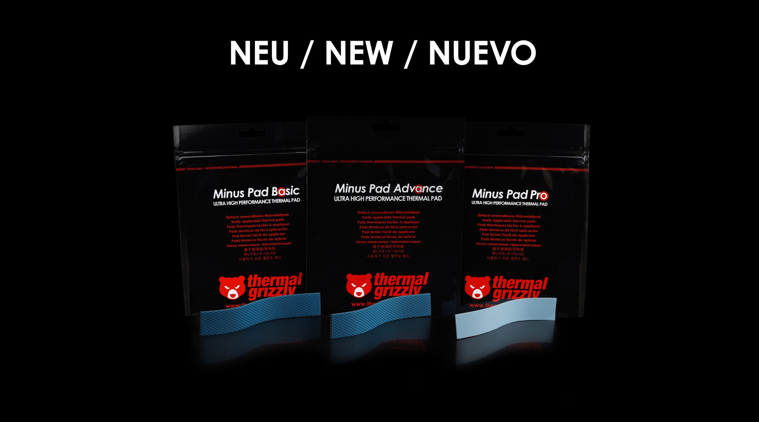 Thermal Grizzly has expanded its thermal pad lineup by introducing the Minus Pad Basic, Minus Pad Advance, and Minus Pad Pro series. These new pads were built upon the established Minus Pad 8, featuring optimised thermal conductivity, compressibility, and price-performance ratios. Designed for versatility, they are suitable for a wide range of applications, including SSDs, graphics card coolers, GPU water blocks, voltage regulators, and memory modules.