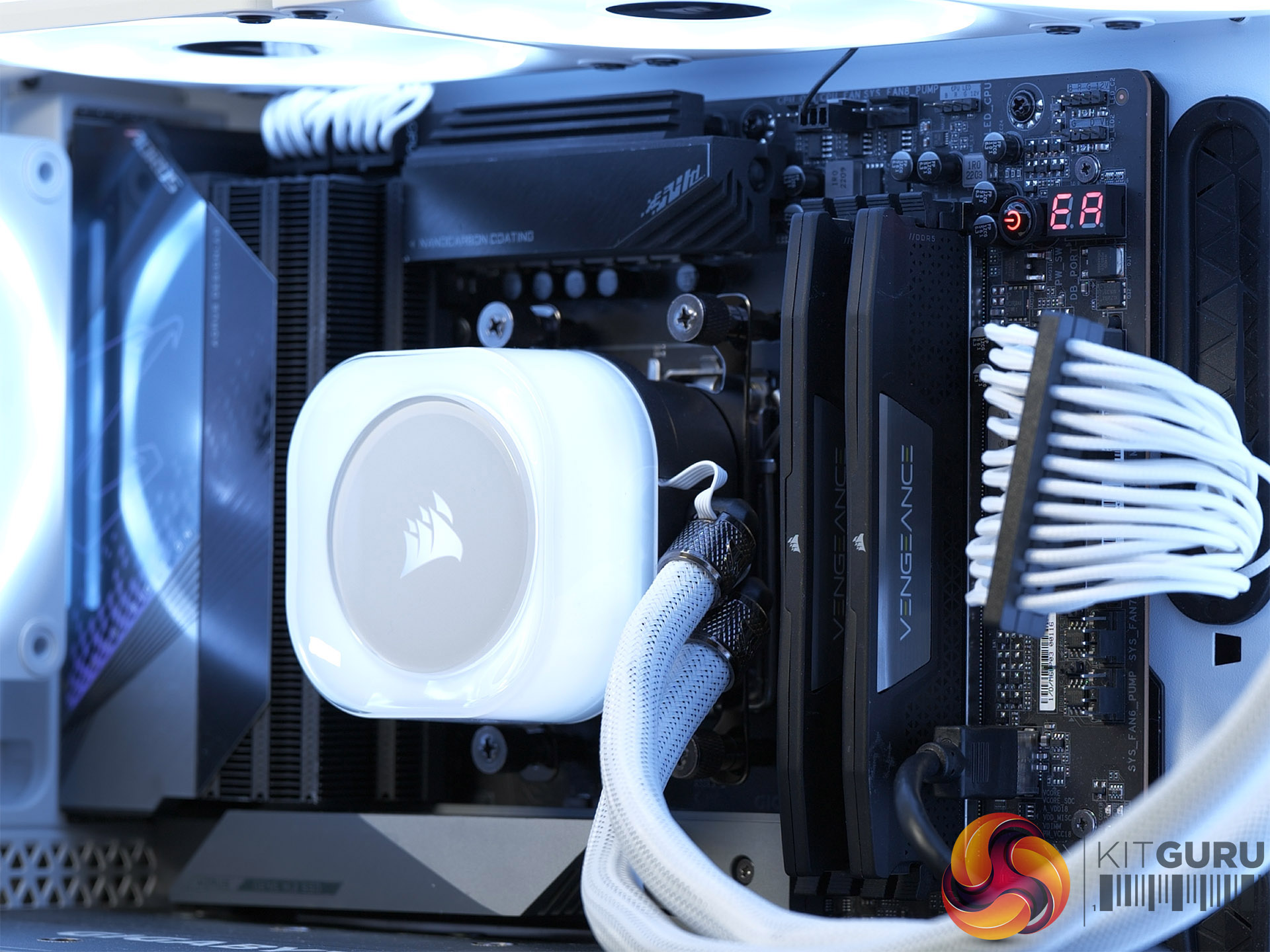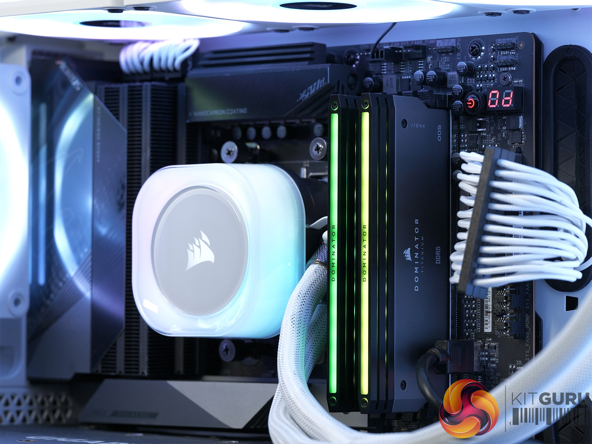We are showcasing a 64GB set of DDR5 6000 EXPO which came in a Corsair Dominator Titanium First Edition kit. This means we are able to show you both the default RGB lighting and also alternative GT Fin Style Tops that promise to maximise cooling. We will be working on a full review of Corsair Dominator Titanium very soon.