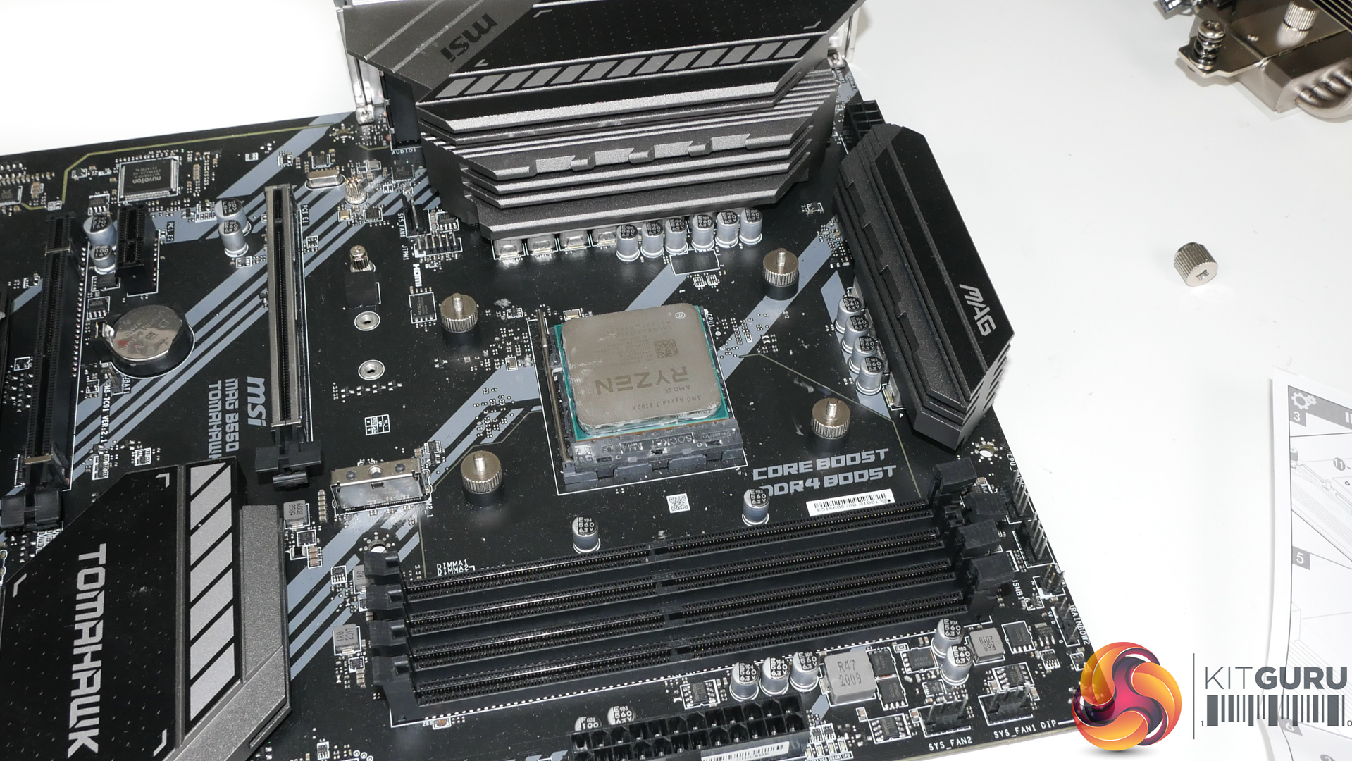 Installation of the Freezer 50 is straightforward from the heatsink perspective. Four posts screw down onto the AM4 backplate and then two metal retention bars are screwed on top of the spacer posts. With the central fan removed, the cooler is screwed onto the retention bars.