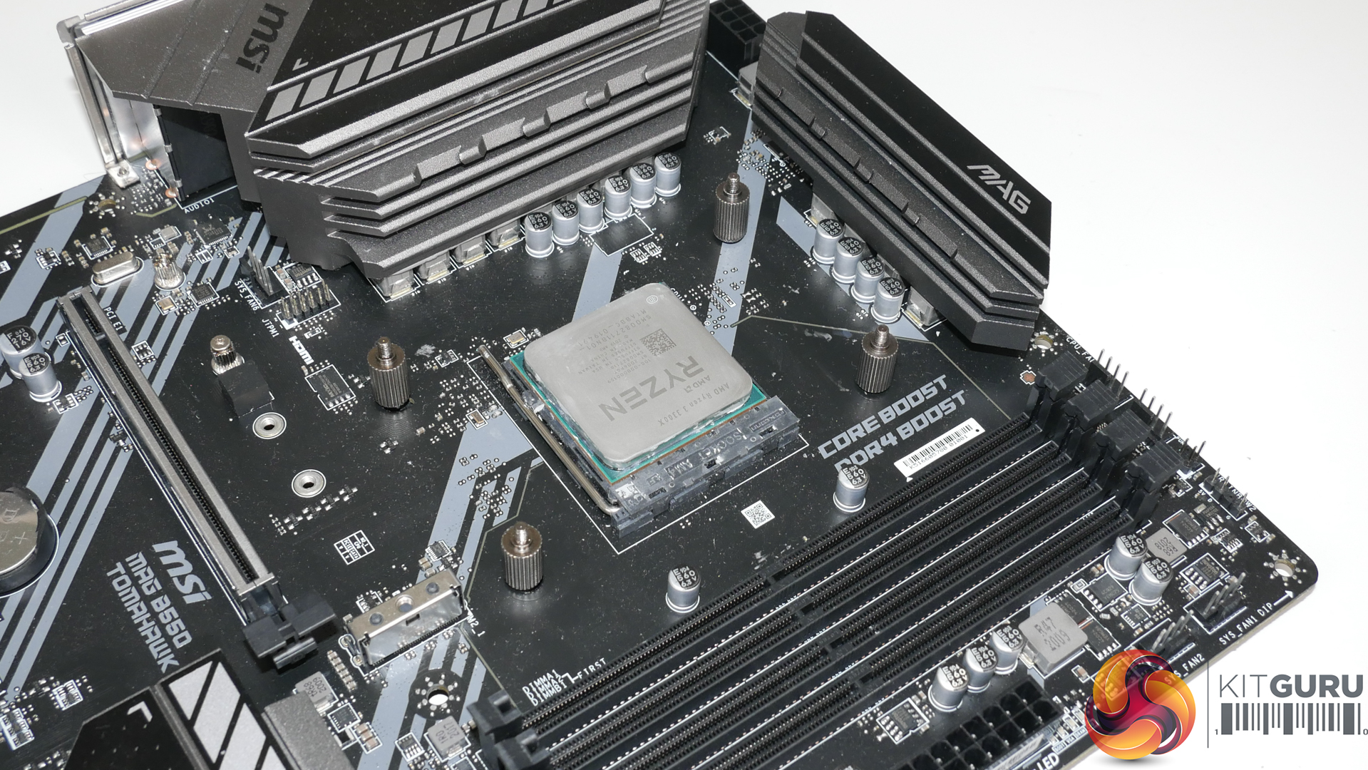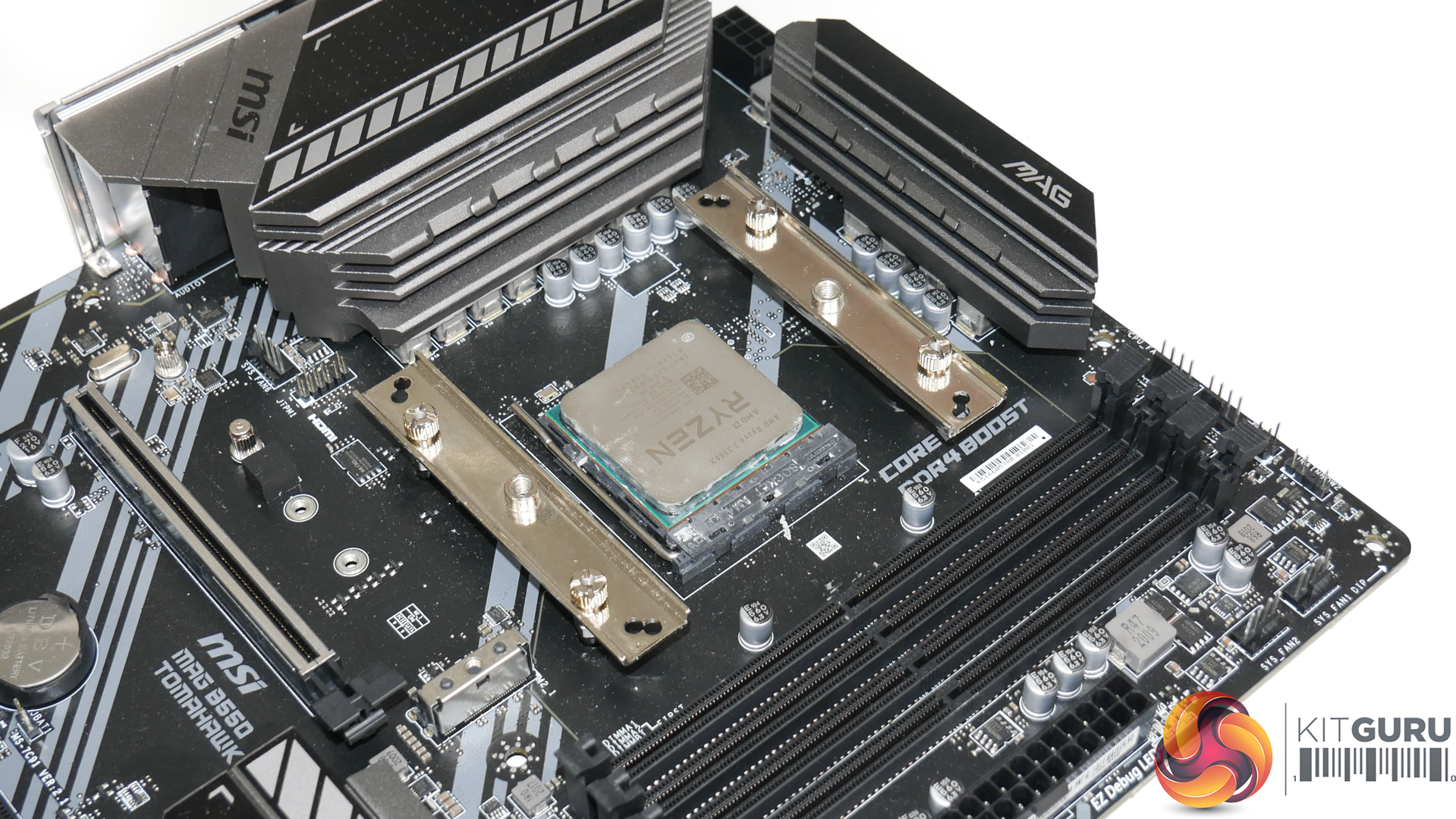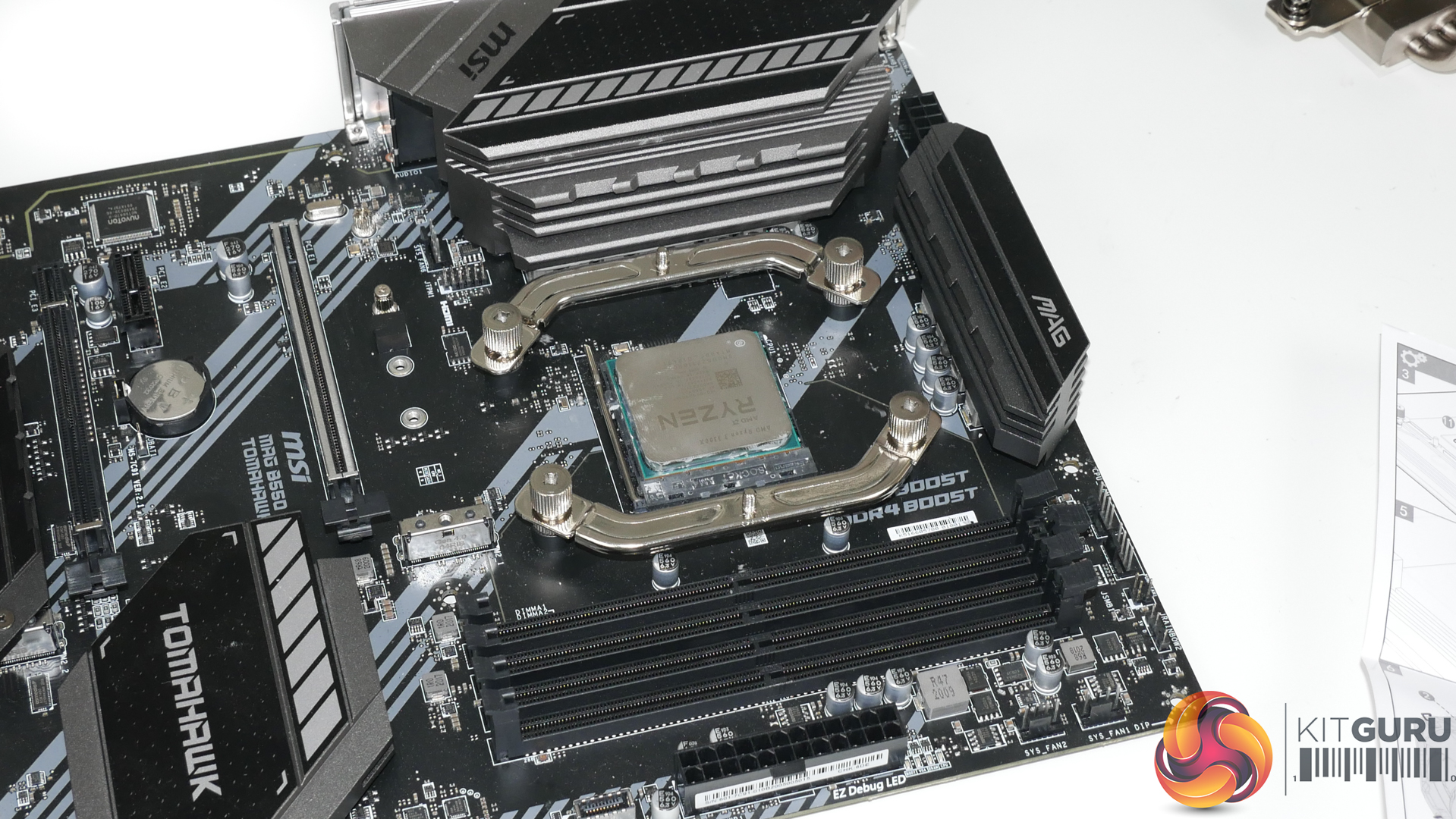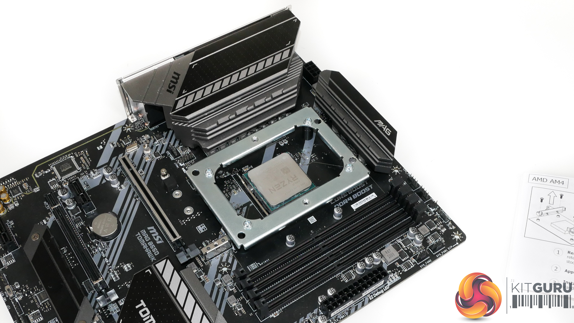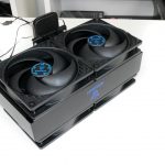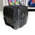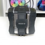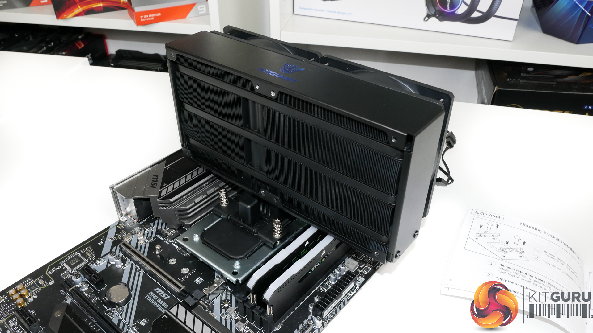 Installation is straightforward. You position the four plastic spaces on top of the default AM4 backplate. The metal bracket is then orientated correctly and screwed into position. The two-fan equipped ProSiphon Elite is the dropped onto the CPU and screwed into place.