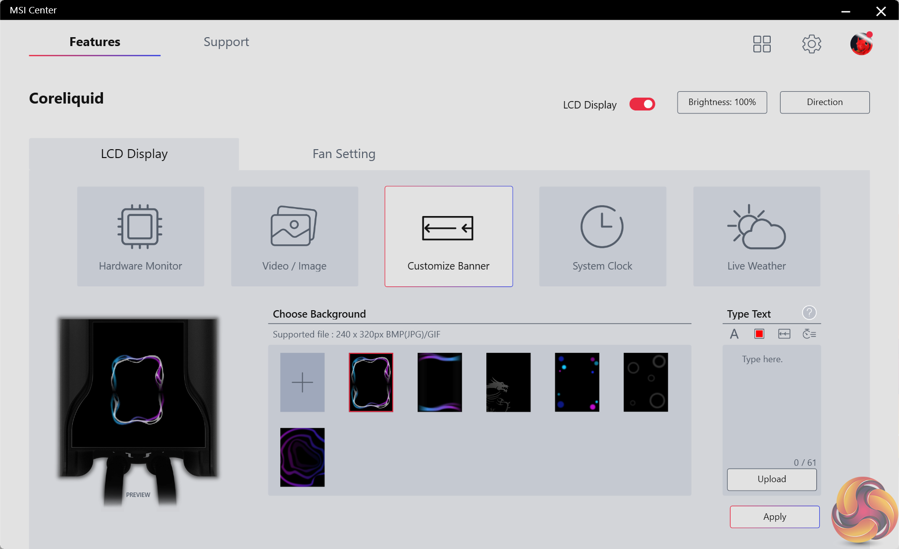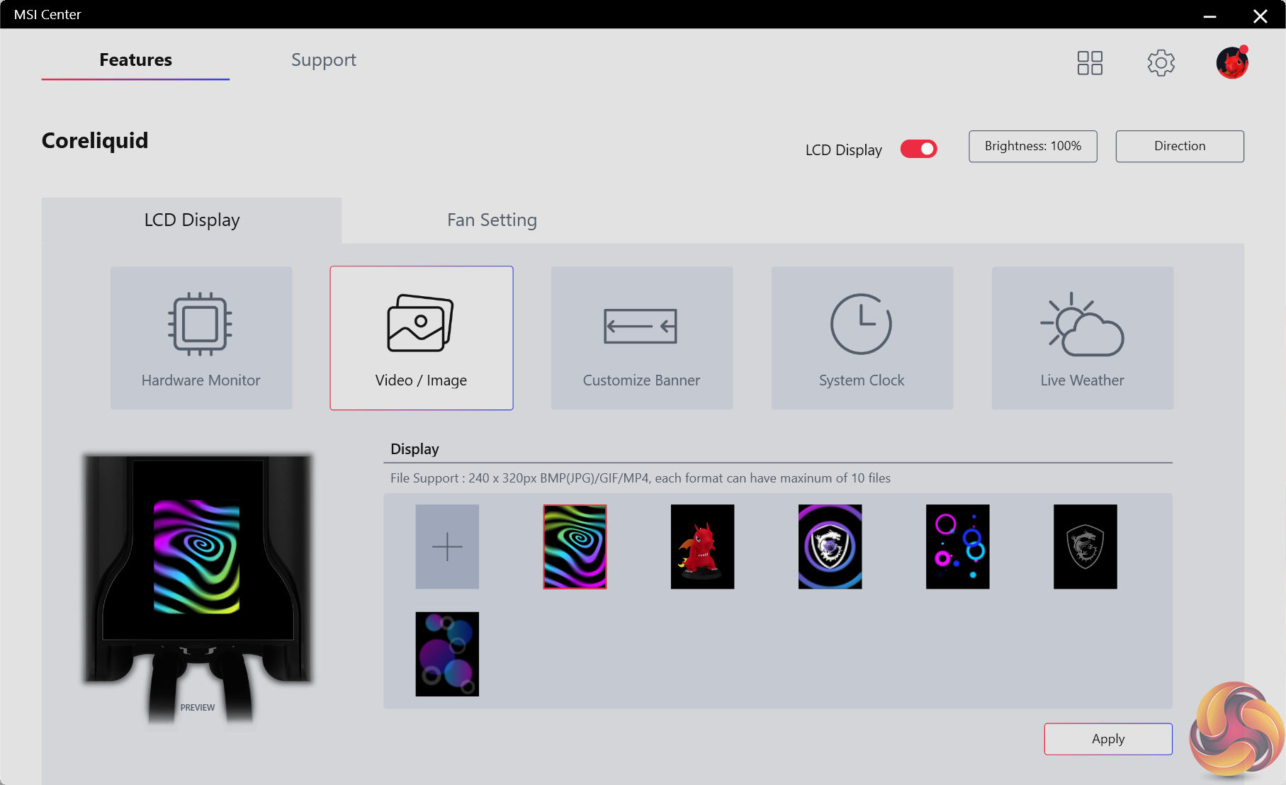 Resolution is 320×240 with 16-bit colour depth and 500-nits of brightness. 500-nits of brightness was just about fine in our testing, but the 320×240 screen lacks some sharpness versus the 480×480 resolution competition from Corsair and Thermaltake.