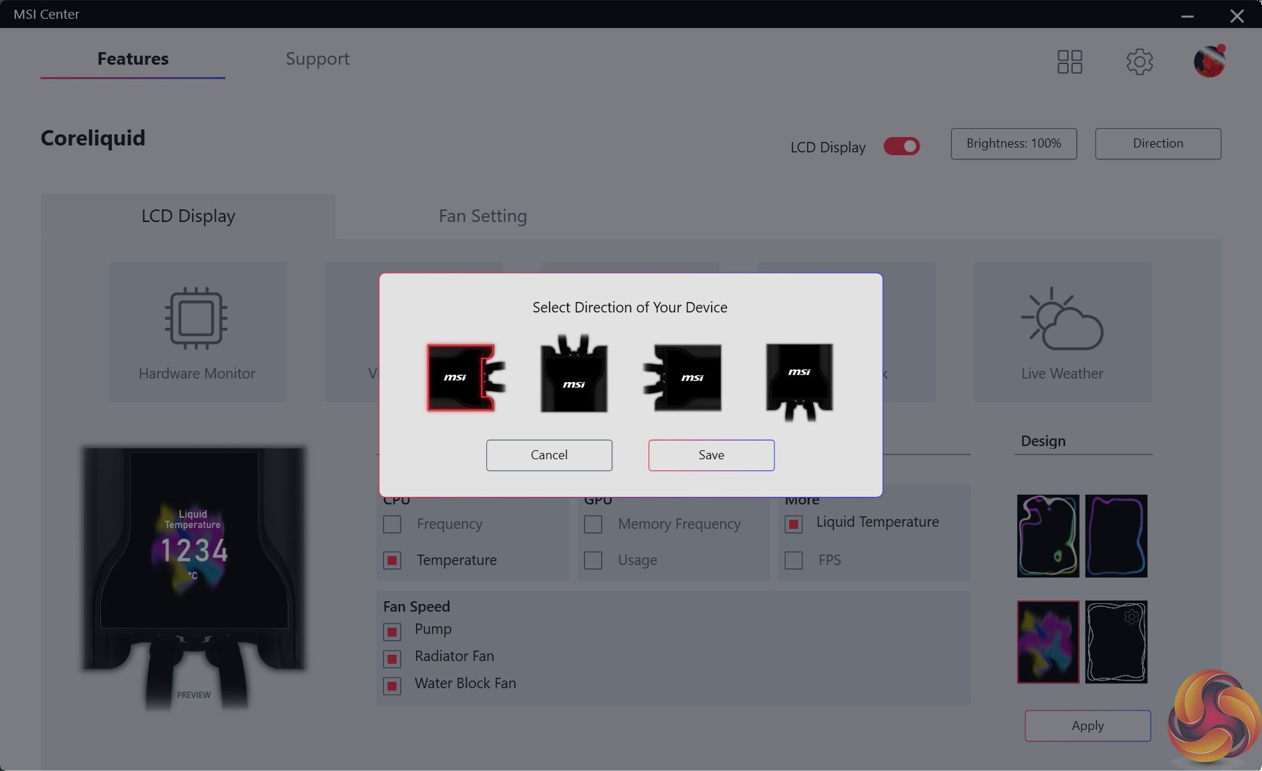 For the functionality it offers, I was happy with the screen’s performance. Seeing things like fan speeds, CPU temperature, liquid temperature, and FPS are all useful and are clear on the screen. Plus, the ability to use personalised images or local weather updates are also useful, depending on your preference.