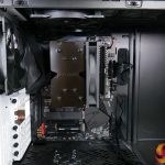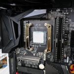 Once the backplate rubber space is stuck on, the bracket can be positioned on the motherboard. Washers and 4 individual stand-offs then hold the backplate in place. This is an OK procedure as long as you have one hand round back and then one hand messing with the washers and stand-offs.