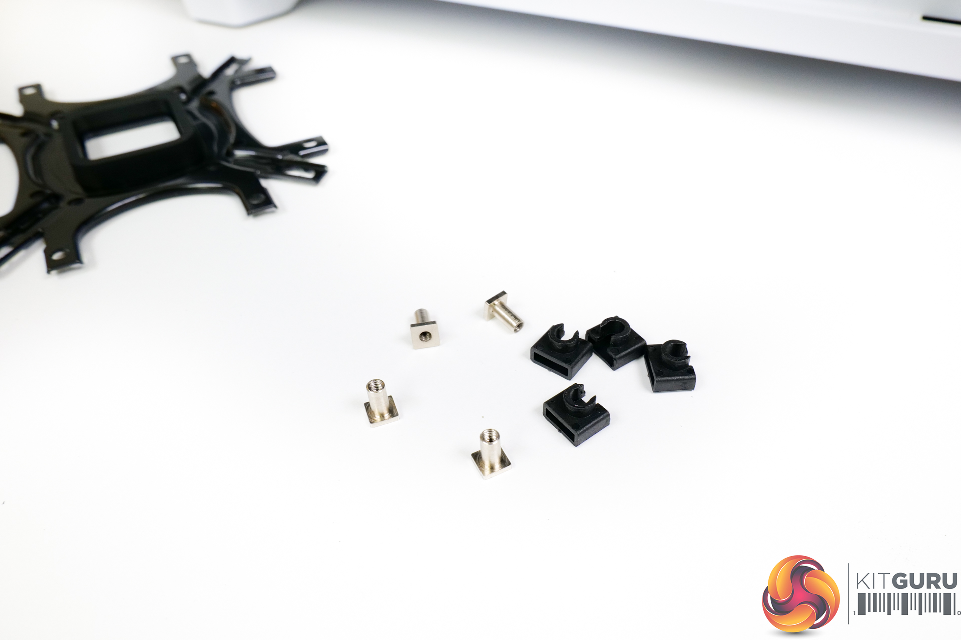 AM4 installation starts by preparing the backplate (after the default AMD fittings are removed, of course). This process requires 4 posts to be positioned through the relevant holes and then clipped in place by plastic caps. The instructions for this step are less clear than they should be, especially as there is more than 1 way to physically carry out the backplate preparation method.