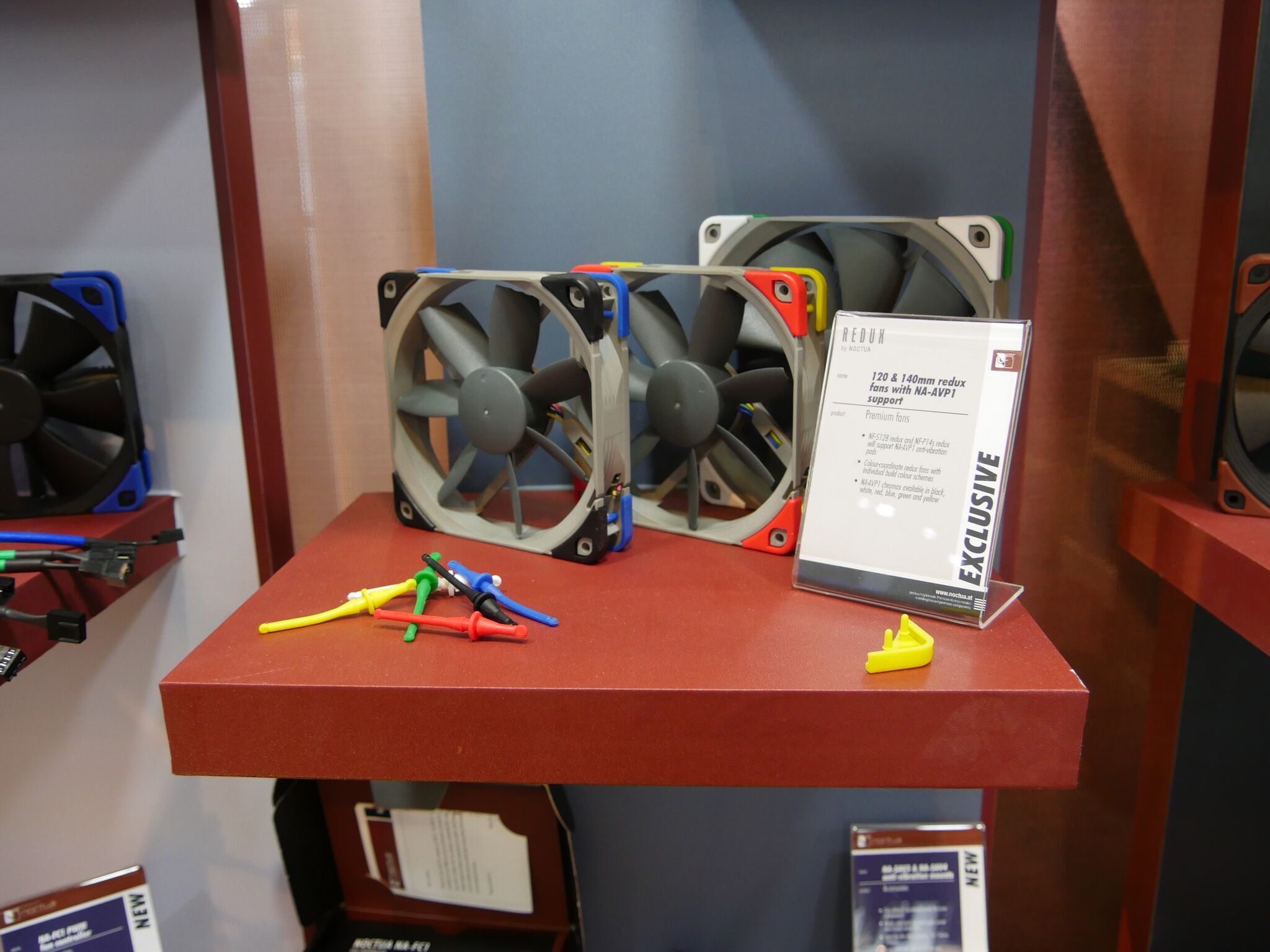 First let's take a look at the new fans. There are some new black fans, which will have replaceable corner mounts to suit colours. There are also a few new industrial fans, which are built for durability and can even be placed under water without breaking. Finally, there is also a new PWM fan controller, which is Noctua's way of trying to fix the PWM ecosystem.