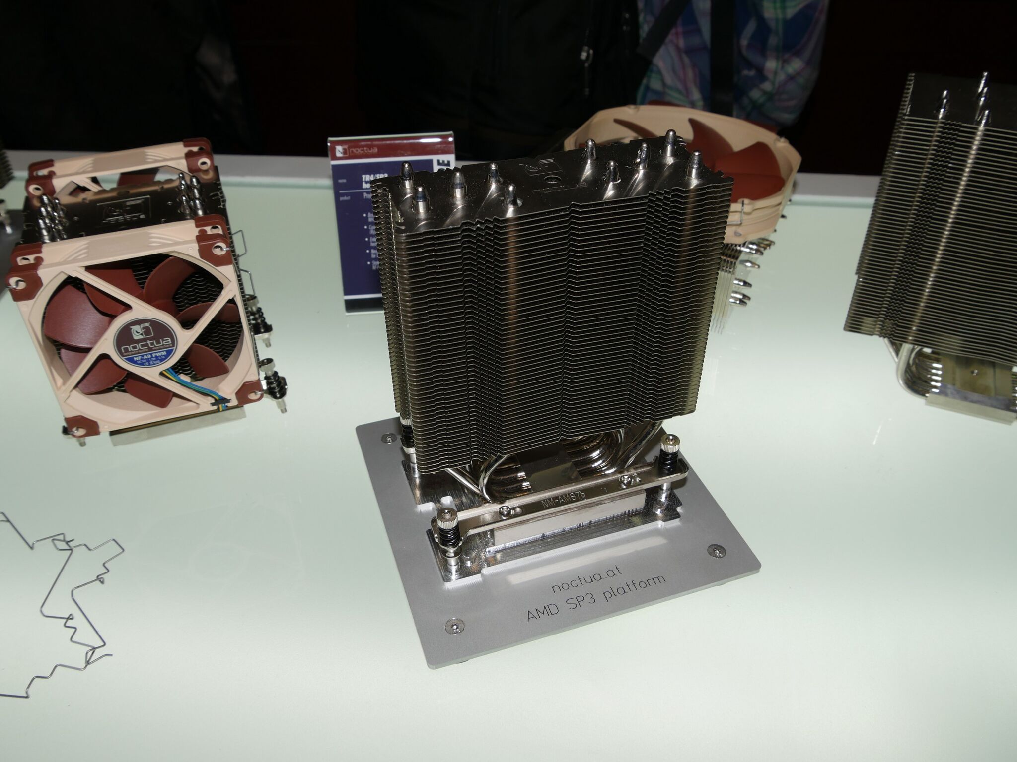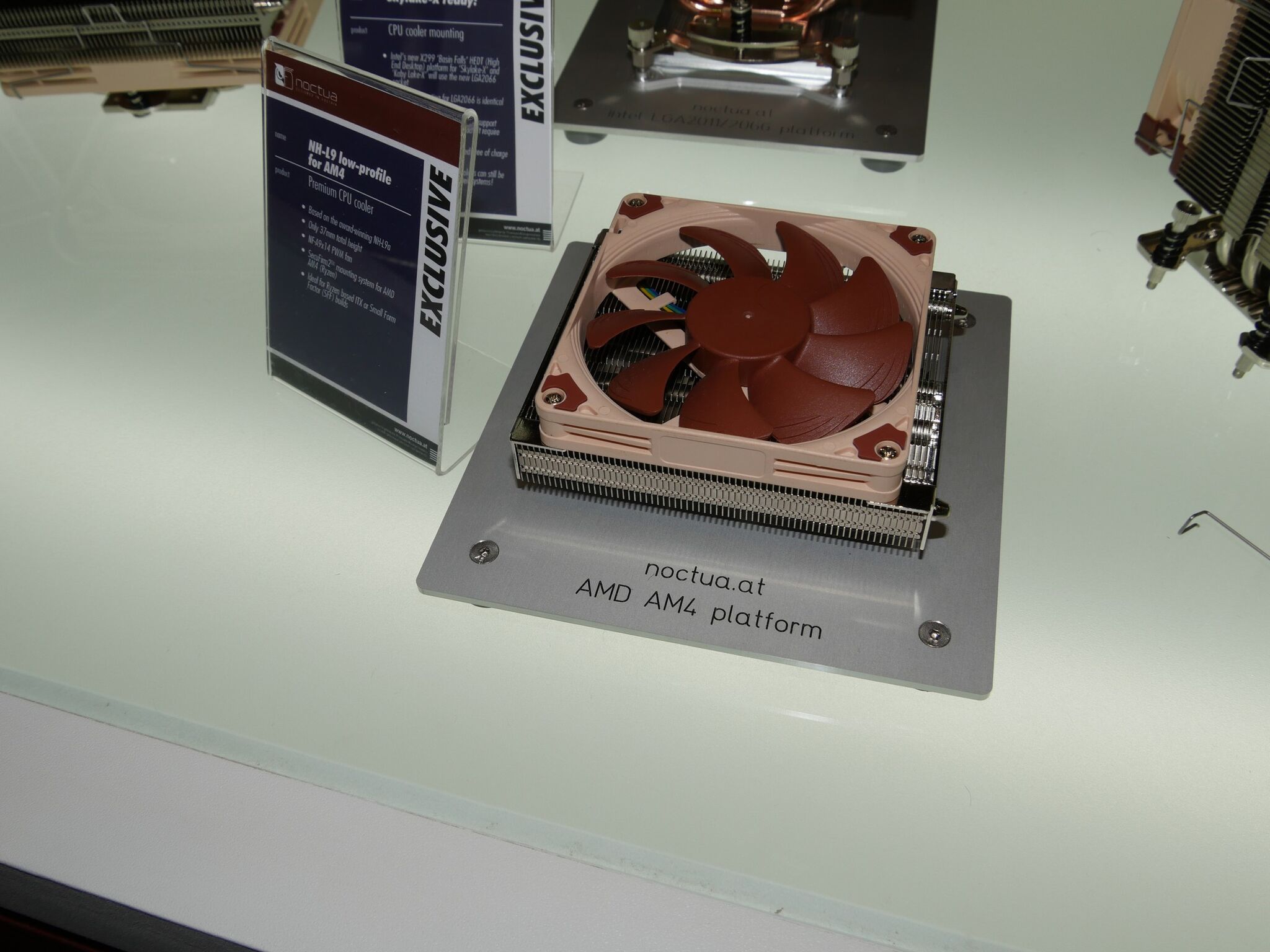 Finally, Noctua also showed off the NH-L9 low-profile AM4 cooler. This cooler will work well with the 95W TDP 8-Core Ryzen CPU at stock speeds (prior to overclocking) and will be very effective for 6-core Ryzen variants, even while overclocked. The fan on this unit uses a new blade design that has a polymer-based material.