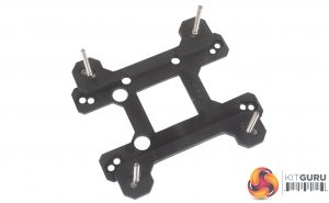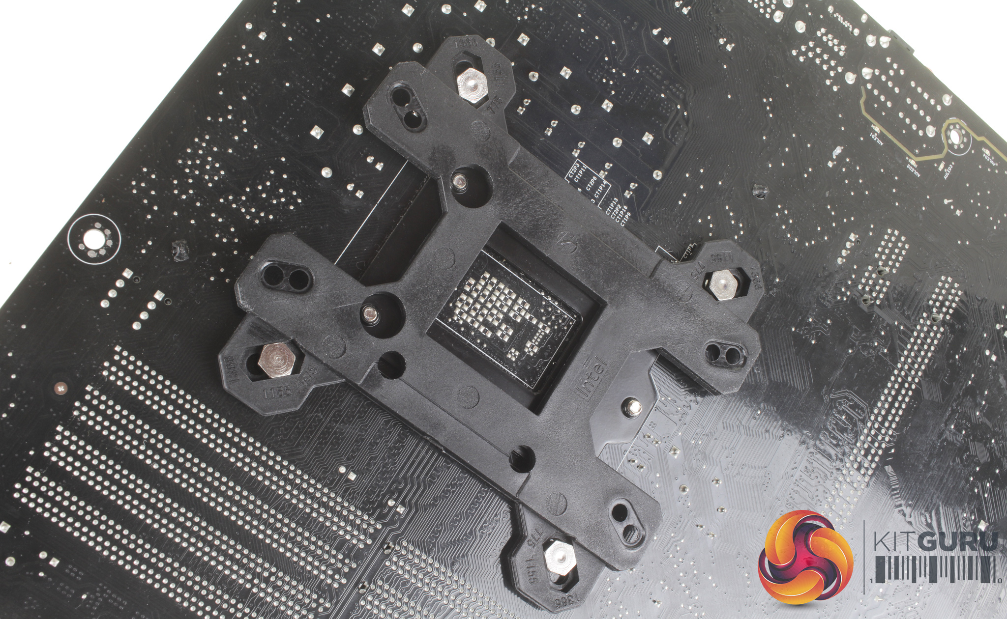 Installation starts with the backplate. There are four long screws which need to pass through the mounting holes, and these screws lock into place in the backplate with a pressure fit. With all four installed, you can then slot the backplate into place on the rear of your motherboard.
