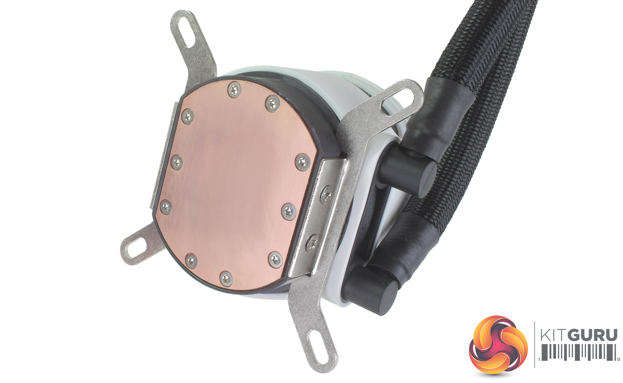 With the standoffs firmly screwed into place, the CPU block itself needs to be prepared. There are two brackets included, a set for Intel and for AMD, which can be mounted to the side of the block with four small screws.
