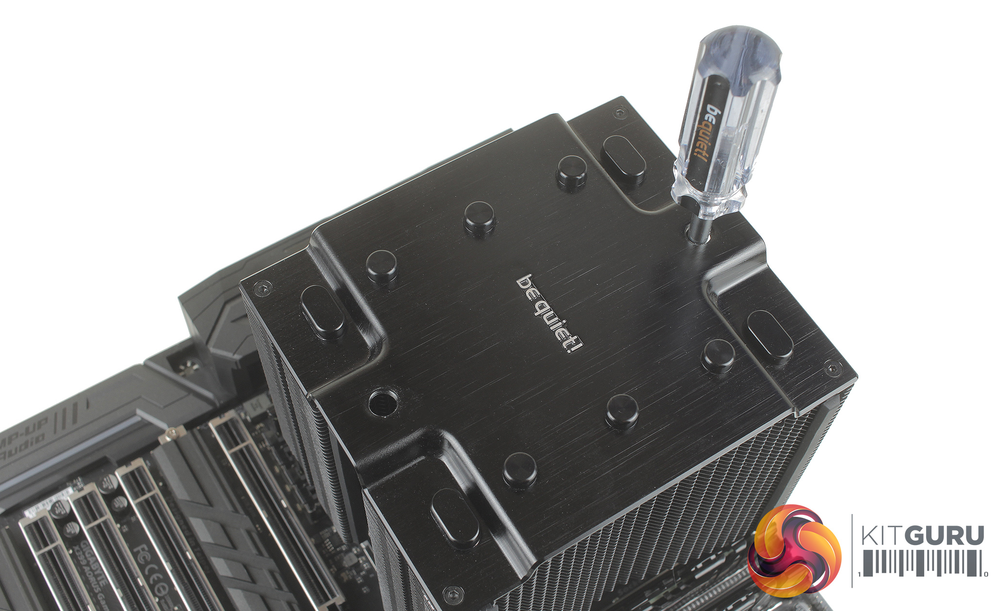 At the top of the cooler are two removable pegs, which can be unscrewed to allow access to the top bracket, and the included screwdriver can then be used to pass straight through the centre of the cooler. With everything firmly mounted in place, you can then re-attach the 135mm fan.