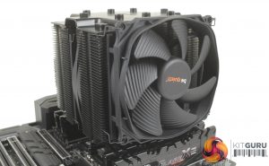 In terms of RAM clearance, there is about 4.5cm which should be perfectly suitable for low profile memory. It’s also good to see that the cooler features a cut-out both at the front and back, so nothing should come into contact with your memory slots. Clearance is fine for low profile memory, but the Geil Evo X RGB Ram typically used for testing on our Z170 platform measures just shy of 6cm, so it’s definitely worth checking this to ensure you can install all of your memory modules and in the correct slots.