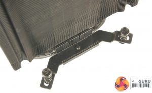 The Cooler Master Hyper 212 Black Edition comes with its fan mounted so this needs to be removed, a simple case of unclipping the two metal wire brackets. You then need to mount two brackets to the bottom of the heat sink, two sets are included, one for Intel and one AMD and these are simply screwed into the base of the cooler.