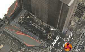 The four sprung loaded mounting pins can be adjusted for your socket by simply pushing the pins down and sliding them into place. You can apply your thermal paste, a small tube is included, and set the cooler down atop your CPU.