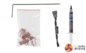 We have a set of instructions, some thermal compound, a low noise adapter, spare wire mounts, and rubber anti vibration pads for adding a second fan at a later date.