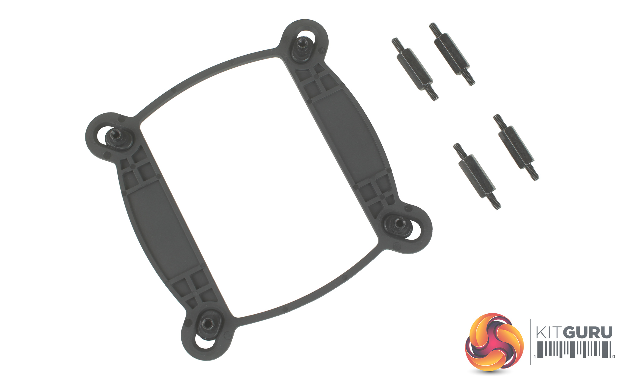 Four double threaded standoffs can then be screwed in to hold the backplate in place. You then need to attach the mounting bracket to the CPU block itself, with options for Intel and for AMD, and the bracket is clipped on using a plastic retention mount.