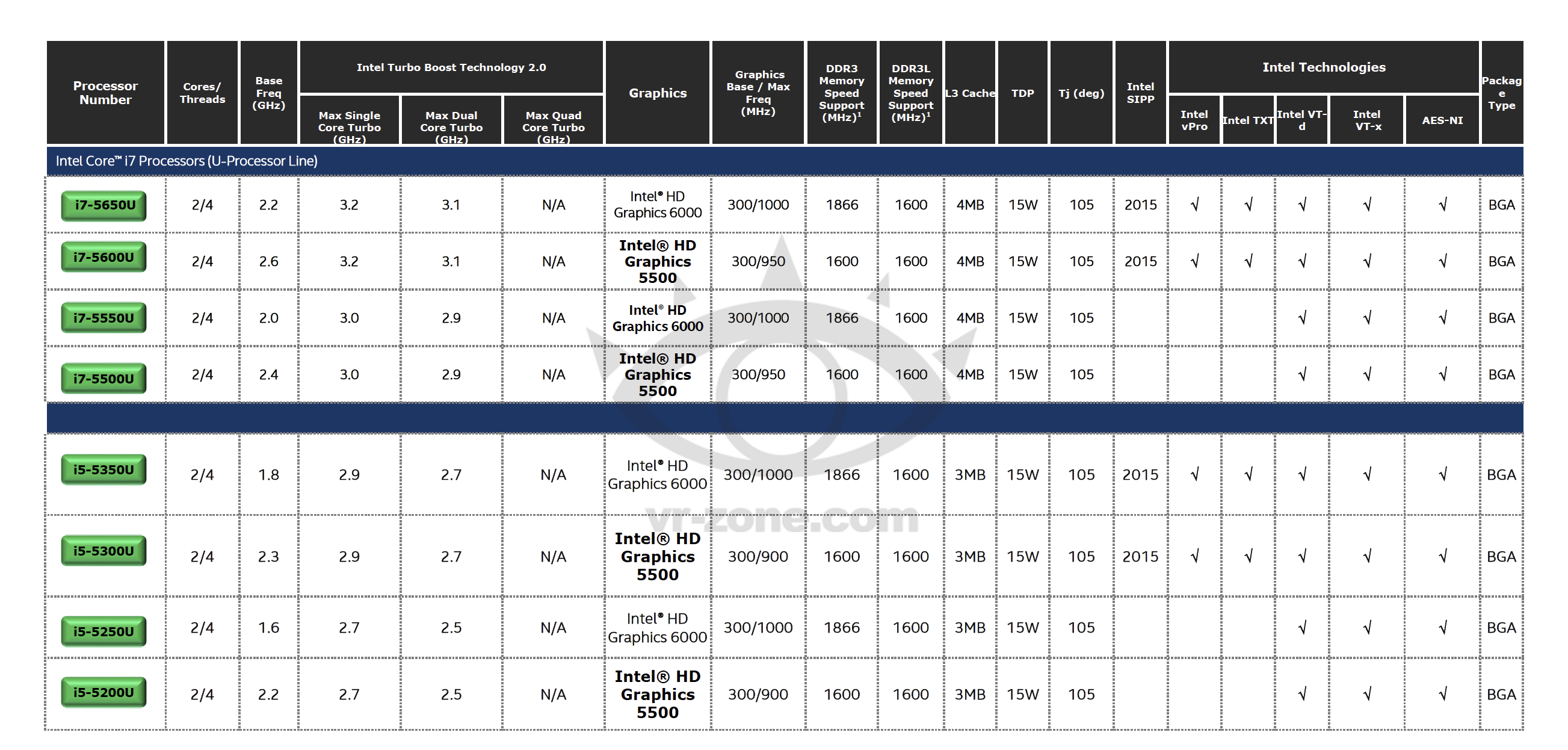 As reported, Broadwell-U (BDW-U) microprocessors feature two cores with HT, new-generation Intel graphics cores, 2MB, 3MB or 4MB of cache, dual-channel DDR3 DRAM controller as well as integrated core-logic. It is noteworthy that thermal design power of all Broadwell-U processors will be just 15W, which will allow makers of notebooks to offer very energy-efficient laptops even based on Celeron or Pentium processors.