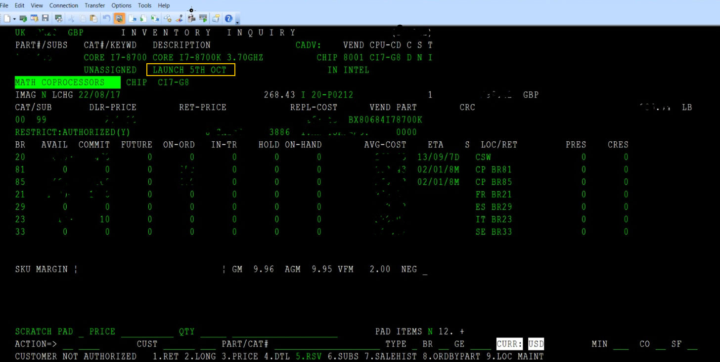 After VideoCardz gave a first look at six ASRock Z370 motherboards and subsequently the MSI Z370 Godlike, shelf-dates started to appear surrounding October 5th. Since then, a stock supply screenshot from a UK retailer has surfaced on reddit showing the same date of launch for the Intel Core i7-8700K.