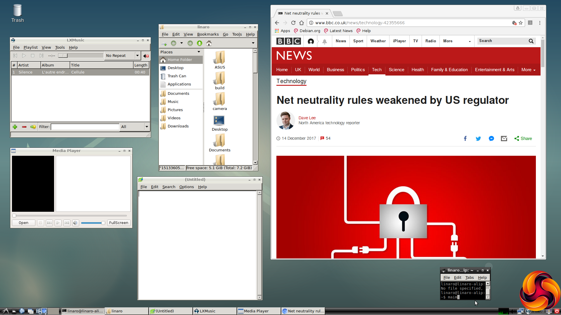Unlike the Android TinkerOS, the Debian version is a fairly standard distribution, albeit a barebones one to begin with. We were able to update and upgrade the Debian OS to the latest versions from the LXTerminal command line.