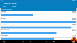 The GPU test uses the Android RenderScript API to assess graphics performance. Although the test is synthetic, RenderScript is the API that Android devices use to accelerate 3D rendering and CPU compute tasks, so testing it gives a good assessment of graphics ability with real Android apps that use GPU acceleration.