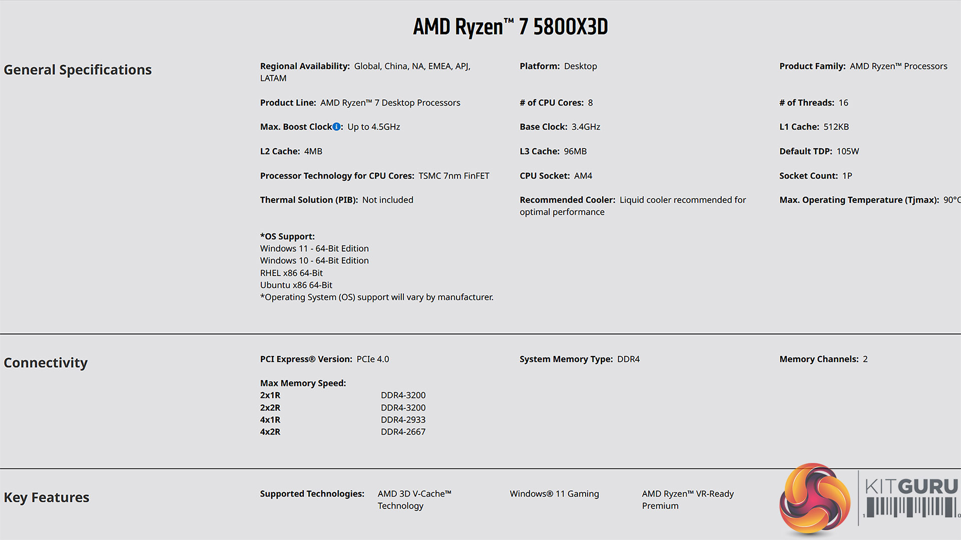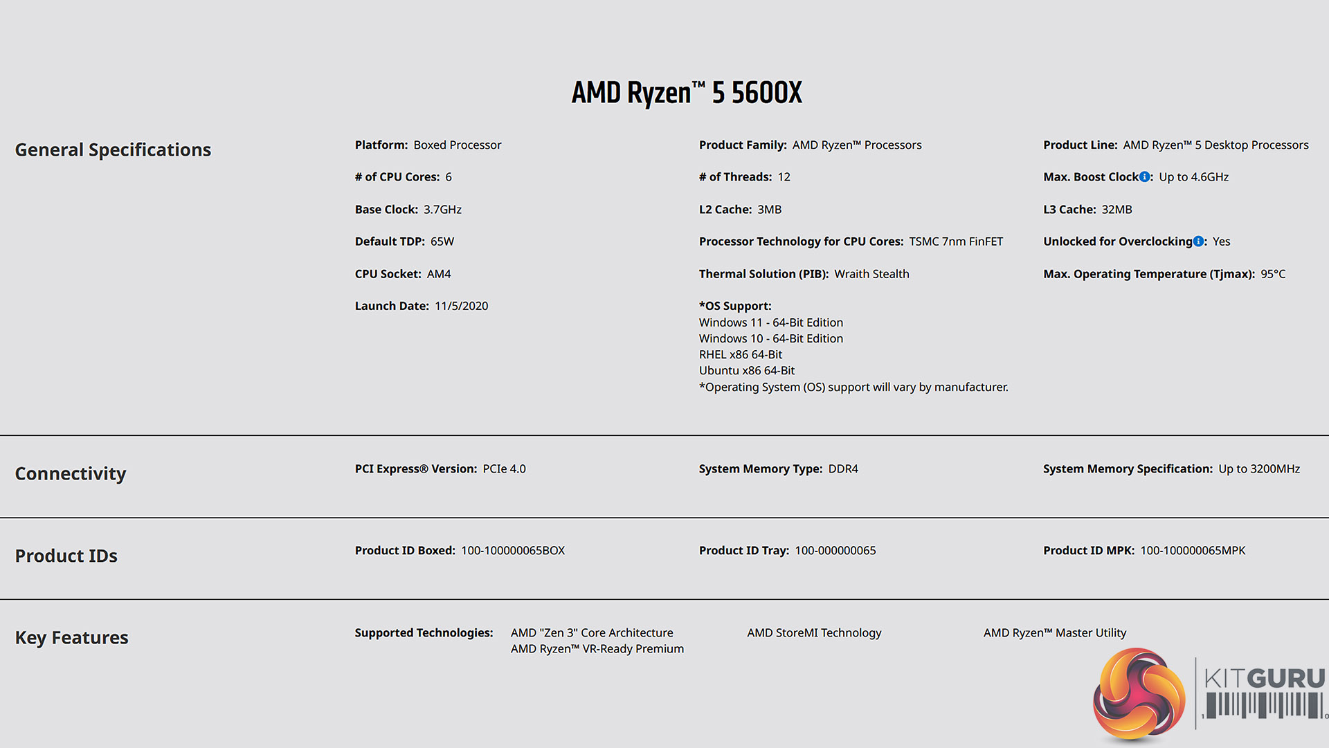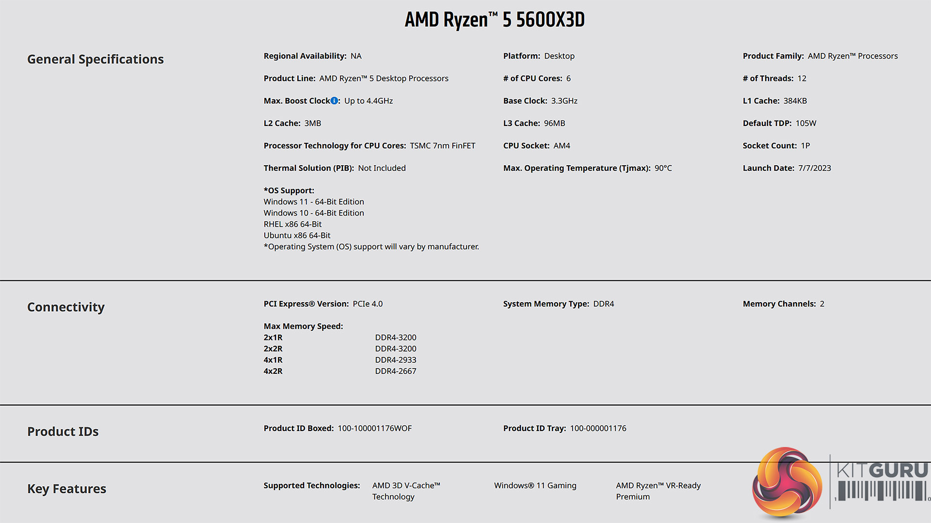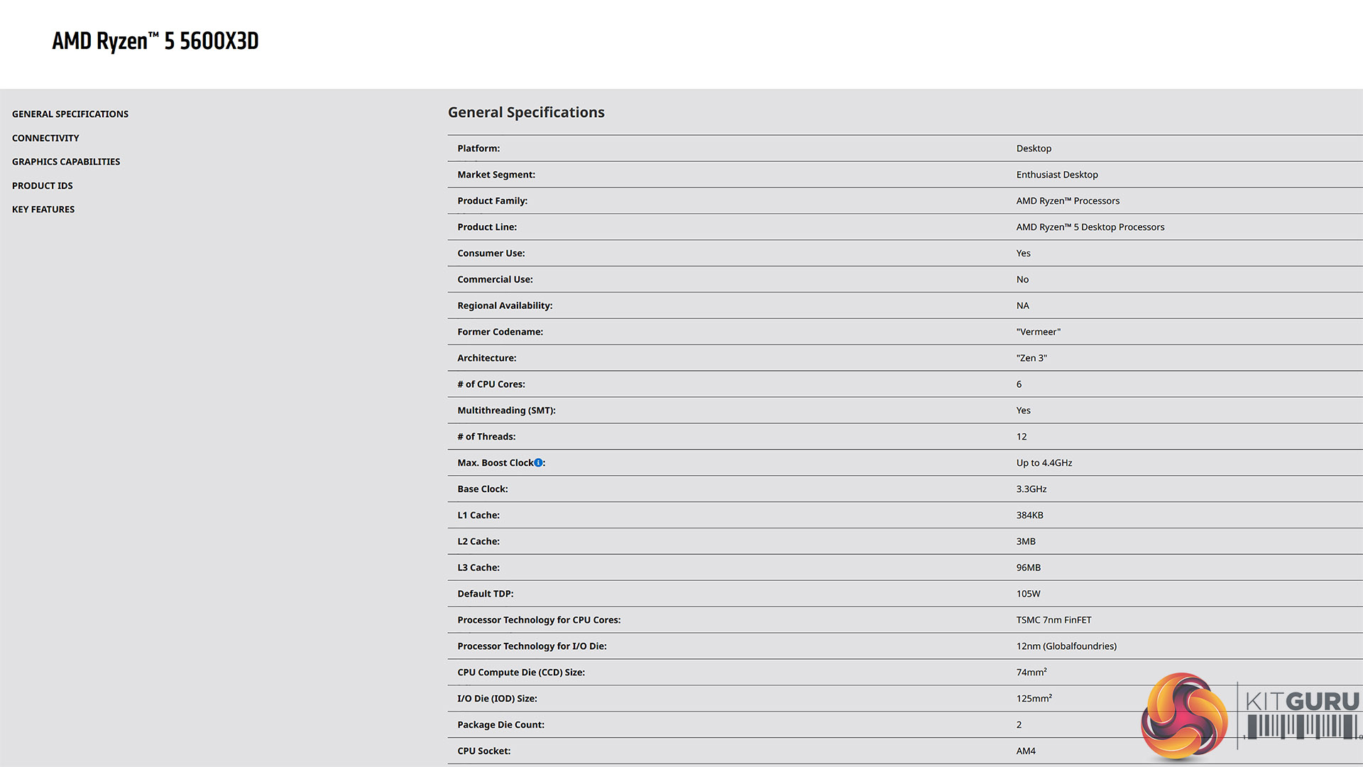 Specification of AMD Ryzen 5 5600X3D