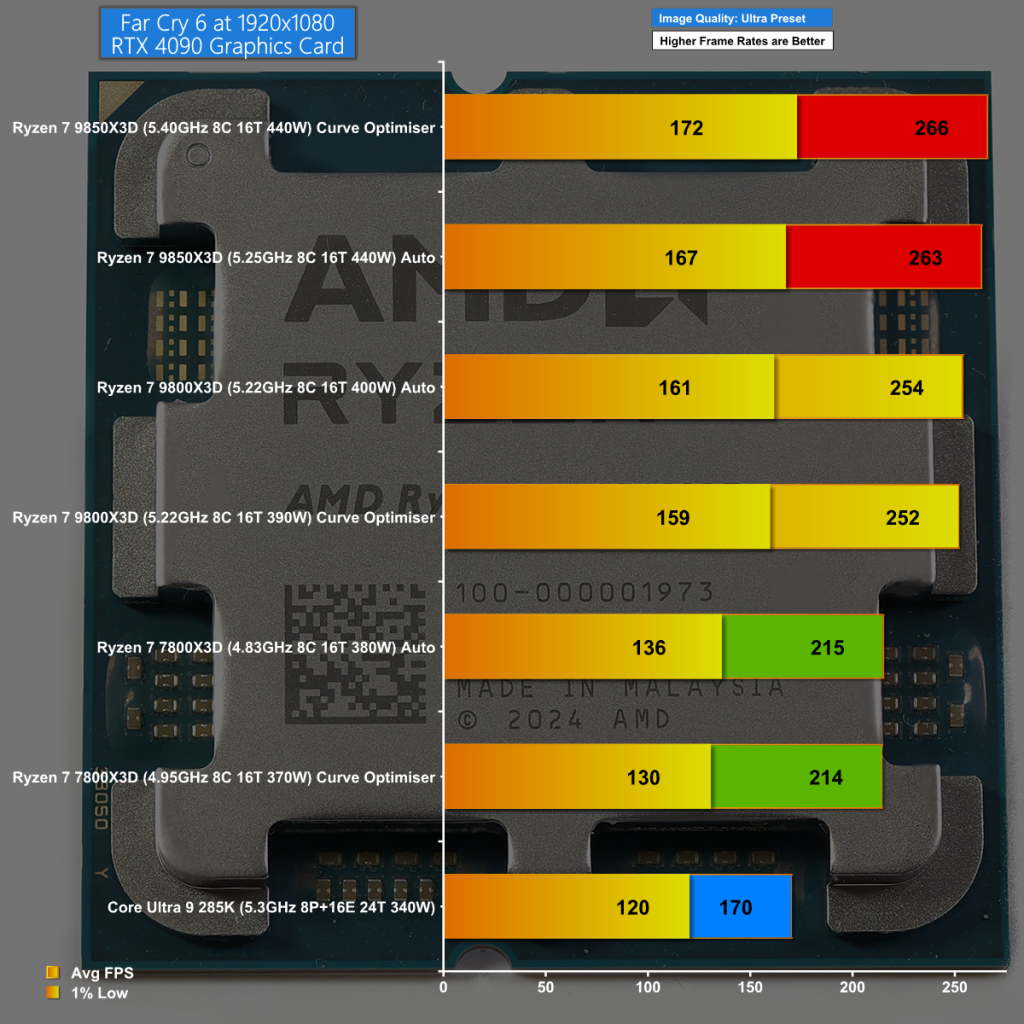 Far Cry 6 at 1080p demonstrates the impressive nature of AMD's 3D V-Cache technology in gaming, and the way it improves with each new generation of processors.