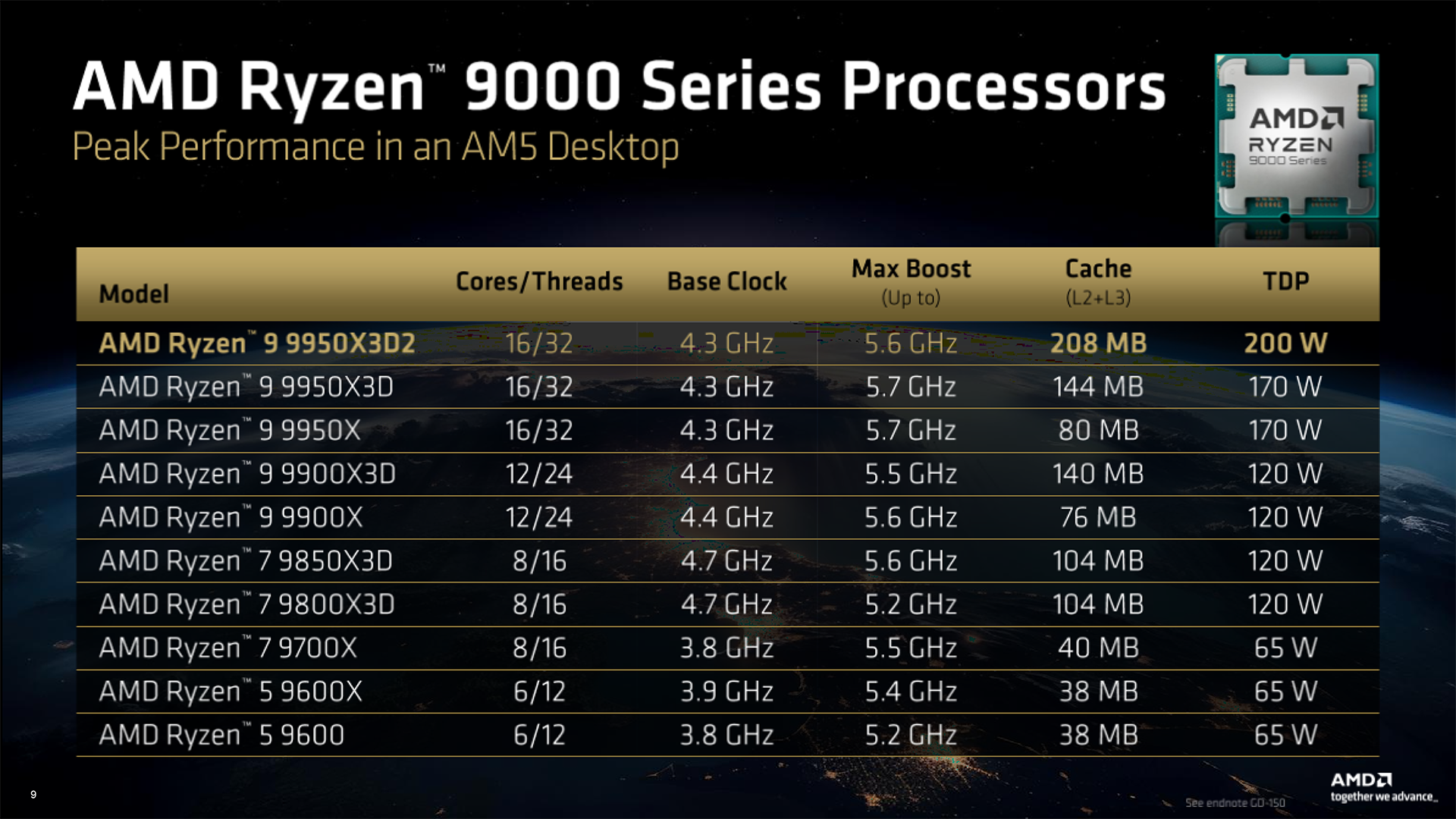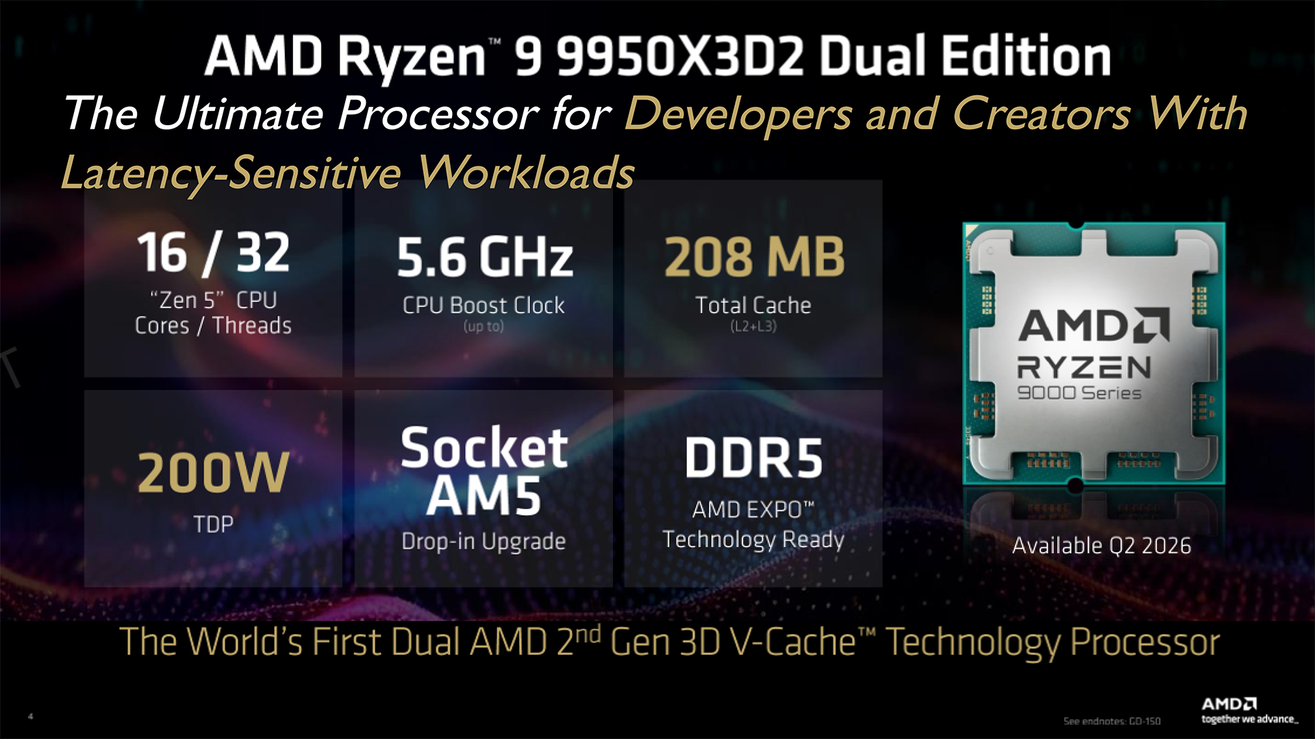 • CPUs: AMD Ryzen 9 9950X3D2 Dual Edition, AMD Ryzen 9 9950X3D and AMD Ryzen 9 9950X