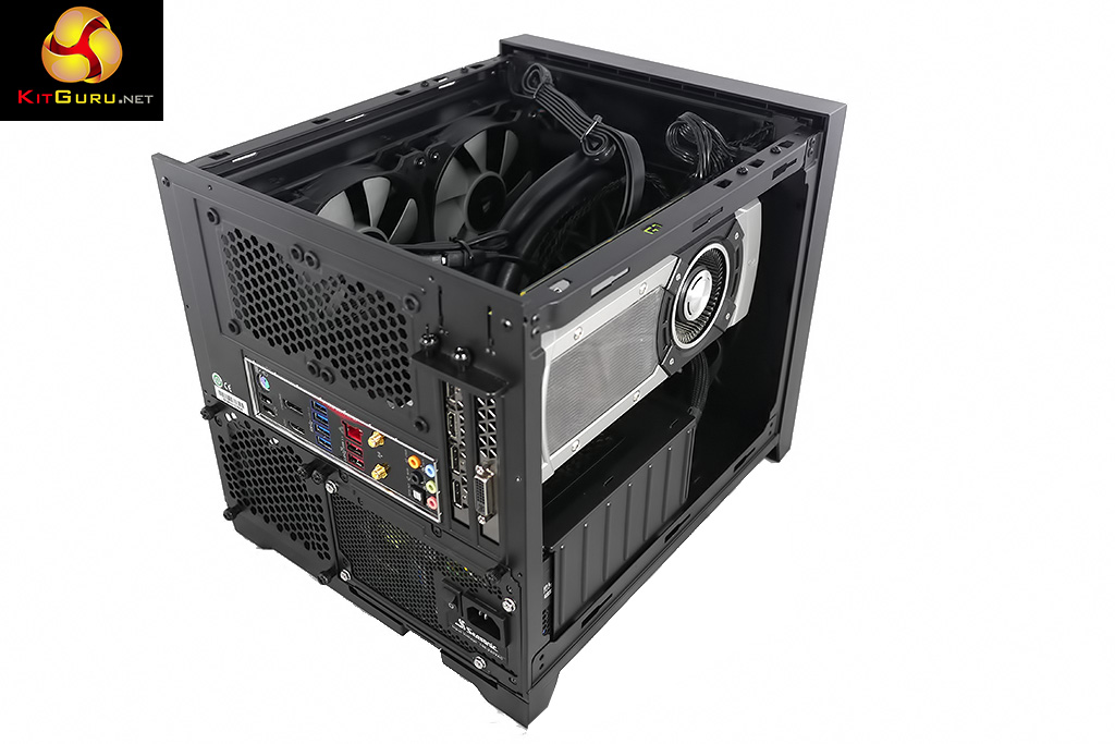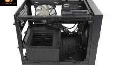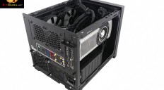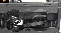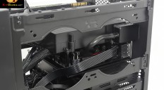 Naturally we plumped for a 240mm H100i to cool our Core i7-6700K and as you will see in our video this required us to remove the optical drive bay, the front intake fan and the exhaust fan at the side. Installing the H100i isn't difficult, although it was very tight for space beside the motherboard where the package of radiator and fans filled every spare millimetre.