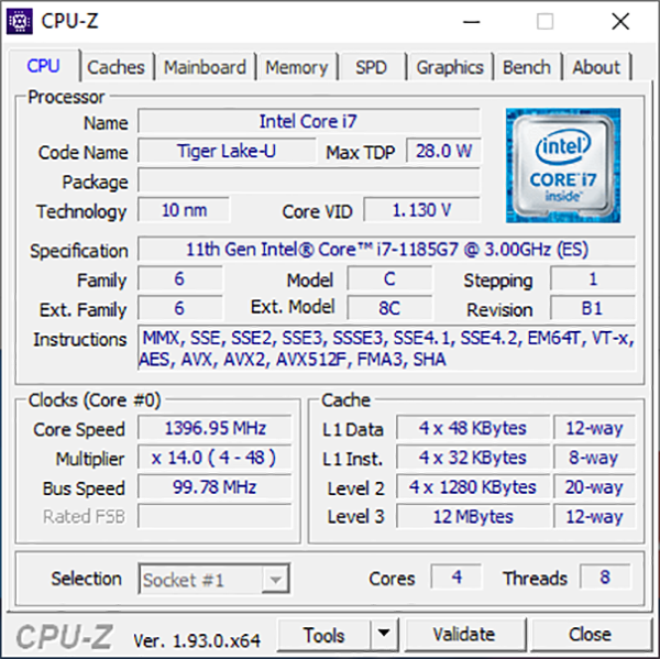 The CPU in this laptop is an Intel Core i7-1185G7 which is a quad core with 8 threads that can operate at a healthy clock speed up to 4.8GHz.