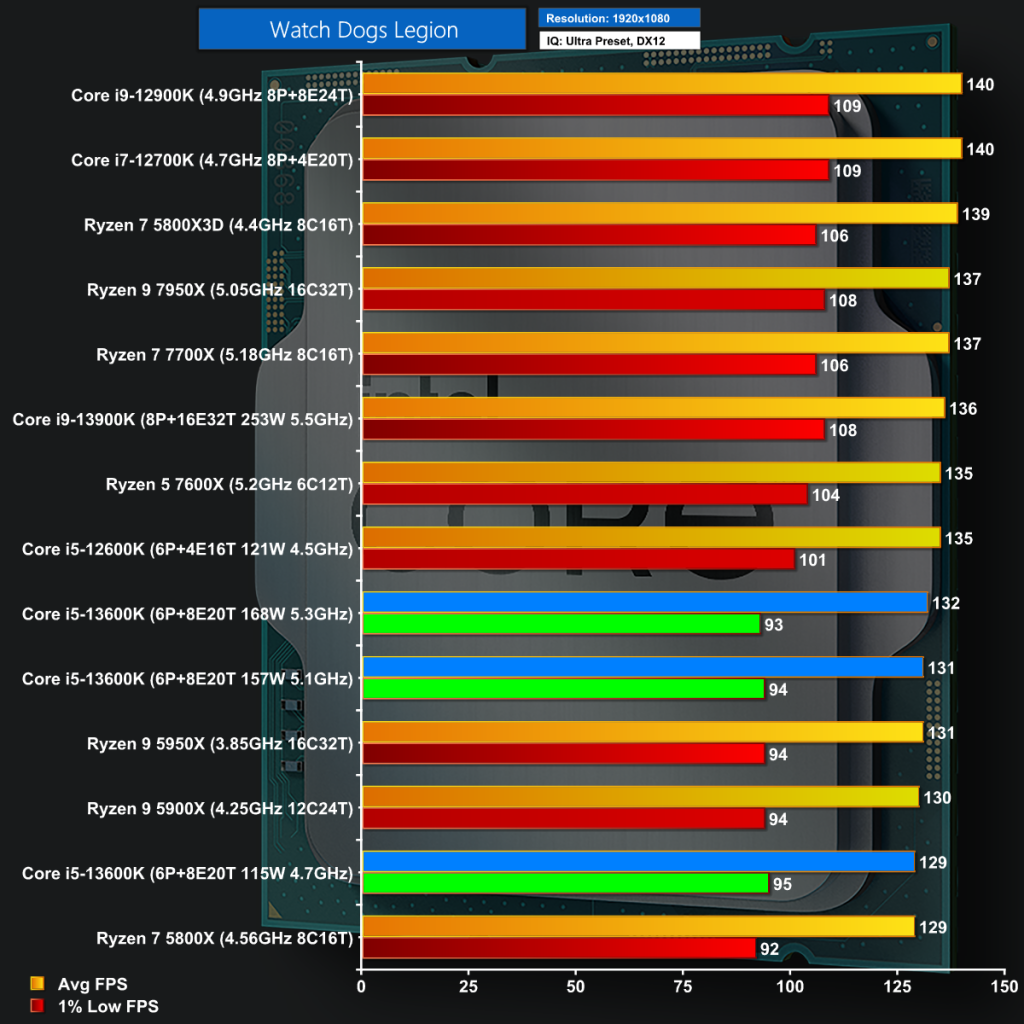 Watch Dogs: Legion at 1080p isn't great on the new Core i5 however we still see frame rates that provide a a superb gaming experience.