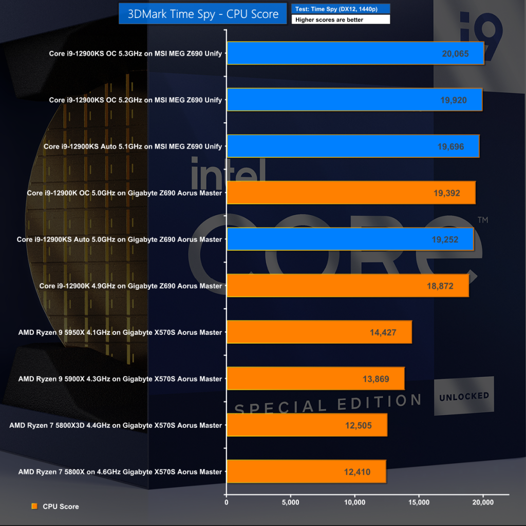 Our final CPU test is once again dominated by the overclocked Core i9-12900KS.