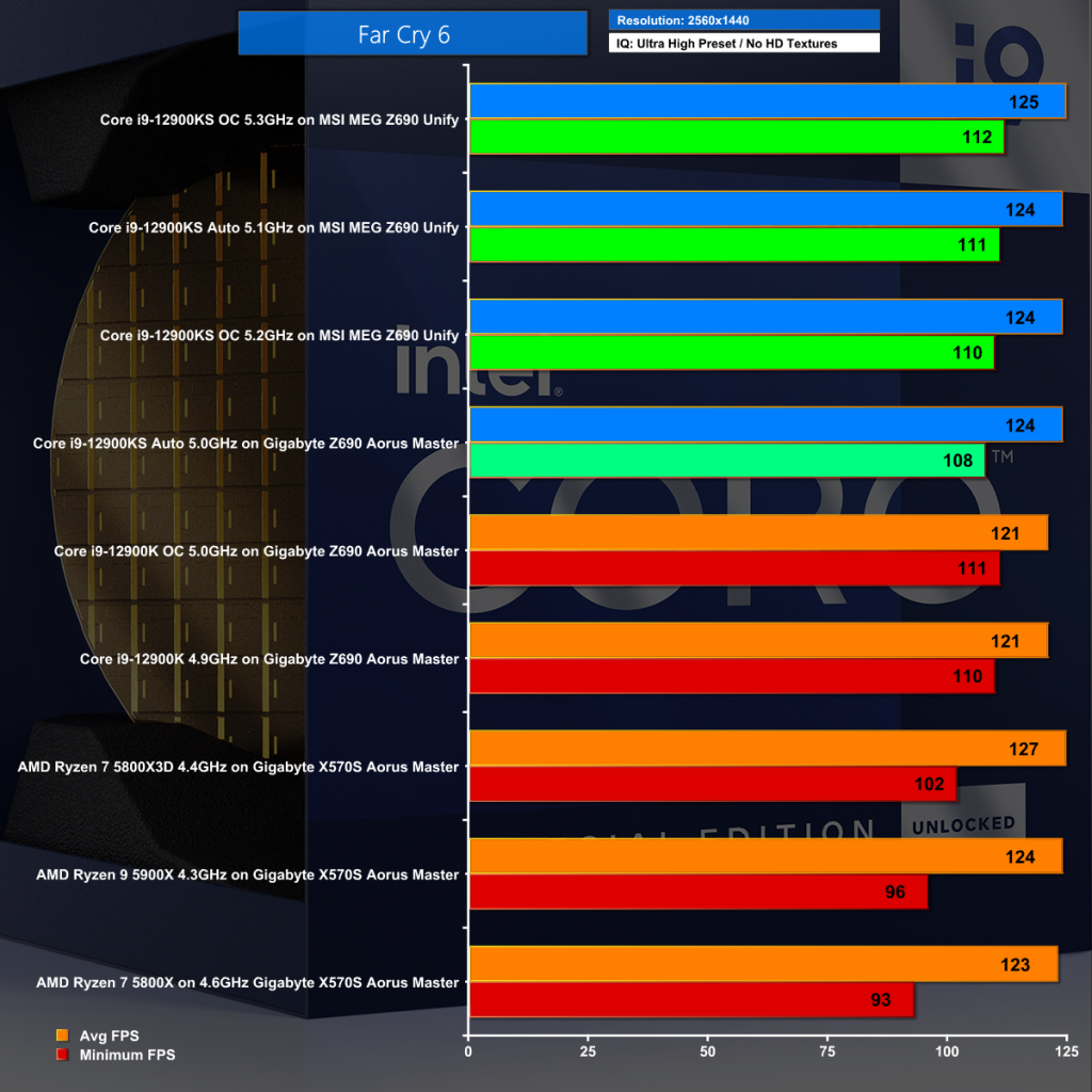 Increasing the screen resolution to 1440p in Far Cry 6 closes things up so while we see Intel winning it is fair to say there is very little to choose between one CPU and another.