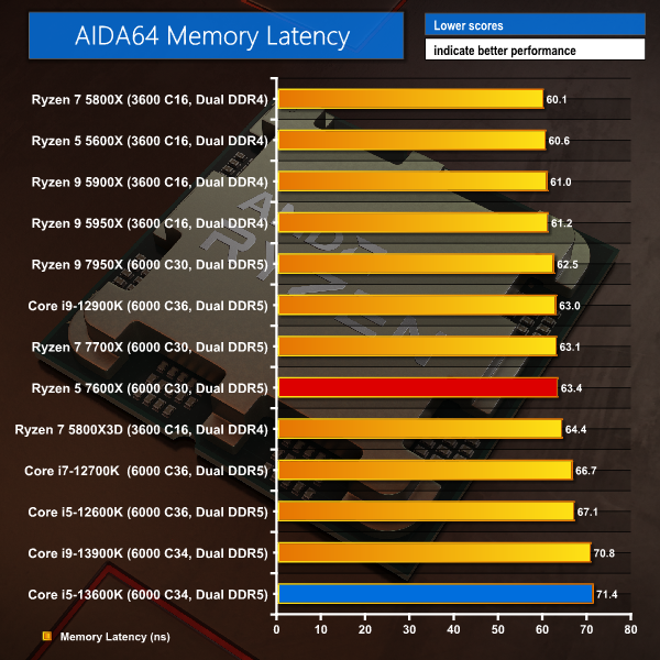 Things are heating up in the more budget-friendly segment of the CPU market. Well, I say budget-friendly with trepidation as the circa-£400 and lower mid-range section is still pricey. Now though, we have the new Zen 4 AMD Ryzen 5 7600X that we will be looking at today. And it has tough competition from the slightly more expensive Intel Core i5-13600K Raptor Lake competitor. Plus, there are the old AMD Ryzen 5000 and Intel 12th Gen Core chips to deal with. So, let’s jump into this review and see how the new six-core, £320 AMD Ryzen 5 7600X performs against the previous generation competitors, as well as the new Core i5-13600K that Leo has reviewed and given us test data for. https://youtu.be/M0_rNQ6pFqE Ryzen 5 7600X has 6 cores and 12 threads with 38MB of total cache – 32MB of which is L3. The base clock of the new TSMC 5nm-fabbed chip is listed at 4.7GHz, and the maximum boost clock is 5.3GHz. The 7600X’s TDP is 105W just like its Ryzen 7 sibling. And there is no boxed cooler, which is arguably sensible for use with AMD’s Precision Boost 2 algorithm. But in this market segment, we can also see some argument for including even a budget heatsink. There is the integrated RDNA 2 iGPU with actually decent performance capabilities and solid media consumption support. In the UK, the Ryzen 5 7600X is around £320-330. That puts it around £50-60 cheaper than Intel’s Core i5-13600K competitor and around £100 below the Ryzen 7 7700X. There is, however, notable competition from Intel’s last-gen Core i5-12600K and the AMD Ryzen 7 5800X; both of those chips are cheaper than the new Ryzen 5. Plus, they can both run on considerably cheaper DDR4 platforms, which is worth bearing in mind. It is also worth noting that the Ryzen 7 5800X3D has had a notable price drop in the last few days too. Zen 4 architecture Let’s start out with a quick overview of the new Zen 4 architecture. We have already written several articles on Zen 4 - including an announcement piece from August 2022 as well as the launch Ryzen 7000 review HERE. So, make sure you check out the previous content for more details. According to AMD, the key design goals for the Zen 4 architecture focused on efficiency gains, latency improvements, and better performance in terms of frequency and IPC. Changes to the cache structure allow AMD to enhance the data flow and reduce latency. One key area to this point is the doubling of L2 cache capacity to 1MB per core instead of 0.5MB per core on Zen 3. Front-end, execution engine and load/store advances are achieved via various measures. The enhancements are designed to improve the data flow for the new Zen 4 core versus Zen 3. And that’s particularly useful for better utilising the downstream resources whilst also reducing latency in the underlying architecture, particularly with that larger slice of L2 cache. Another noteworthy enhancement to Zen 4 is AVX-512 support. This is technically handled via a double-pumping of the 256-bit wide data path, rather than a single operation, because AMD didn’t want to spend the core area of a full 512-bit data path. While AVX-512 support is a cool inclusion, we have seen from Intel’s adjustments that it isn’t really a significant benefit for the consumer market currently. Zen 4 servers on the other hand – they’ll like that alongside BFloat16. Ryzen 7000 CPU Configuration The Ryzen 7000 chips use 8-core CCXs built on the TSMC 5nm process node. The individual Core Complexes feature a 32MB slice of L3 cache – as we saw with Zen 3 – but no 3D V-Cache like we saw with the 5800X3D. We’ll have to wait for the V-Cache chips because AMD said they didn’t want to delay these parts. Each 8-core core chiplet measures in at 70mm2 with 6.50 billion transistors. That’s an area reduction versus the 80.7mm2 Zen 3 core chiplet which featured 4.15 billion transistors. Clearly, the density uptick of TSMC 5nm is substantial. Aside from density, frequency is another huge improvement from 5nm. We now see boost clocks as high as 5.7GHz on the 16-core chip! The new Ryzen 7000 Series IO Die is a substantial improvement versus Ryzen 5000. Fabbed on the TSMC 6nm process node, AMD has gone for a more advanced, more expensive manufacturing option with its Ryzen 7000 IO Die. That’s actually a change of direction versus Ryzen 5000 which was built using significantly older 12nm process technology. This decision allows AMD to increase the transistor count from 2.09 Billion previously to 3.40 Billion now, alongside a small decrease in die area from 125mm2 on Ryzen 5000 to 122mm2 now. And they jam a bunch more functionality onto the new IO chiplet, too. We get 28 lanes of PCIe Gen 5, a dual-channel DDR5 memory controller that supports up to JEDEC-5200 and ECC, USB 3.2 and Type-C support, and USB BIOS Flashback. AMD also includes low-power methodologies borrowed from the Ryzen 6000 Series Mobile processors, such as SOC power states, clock gating, and power gating. Importantly, the IO Die also features the integrated GPU that features two RDNA 2 Compute Units. When we asked AMD about this inclusion during their tech day in Austin, Texas, the response was quite clear in that this was included to allow them to sell partner systems to businesses who require iGPU capabilities for powering a basic monitor. As we have seen on the Intel side, though, the inclusion of a modern iGPU also has the benefit of allowing for competent media encoding and decoding capabilities. Of course, it’s not just the new Ryzen 7000 series processors that have launched recently, as the new chips sit on AMD’s new AM5 platform The new 1718-pin LGA AM5 socket features a denser pin array for better power capability and improved signal integrity for high-speed interfaces like DDR5 and PCIe Gen 5. Now, we see chips with TDPs up to 170W out of the box, which means 230W of package power delivered under stock conditions. That’s a substantial uptick versus the 142W peak package power delivery f