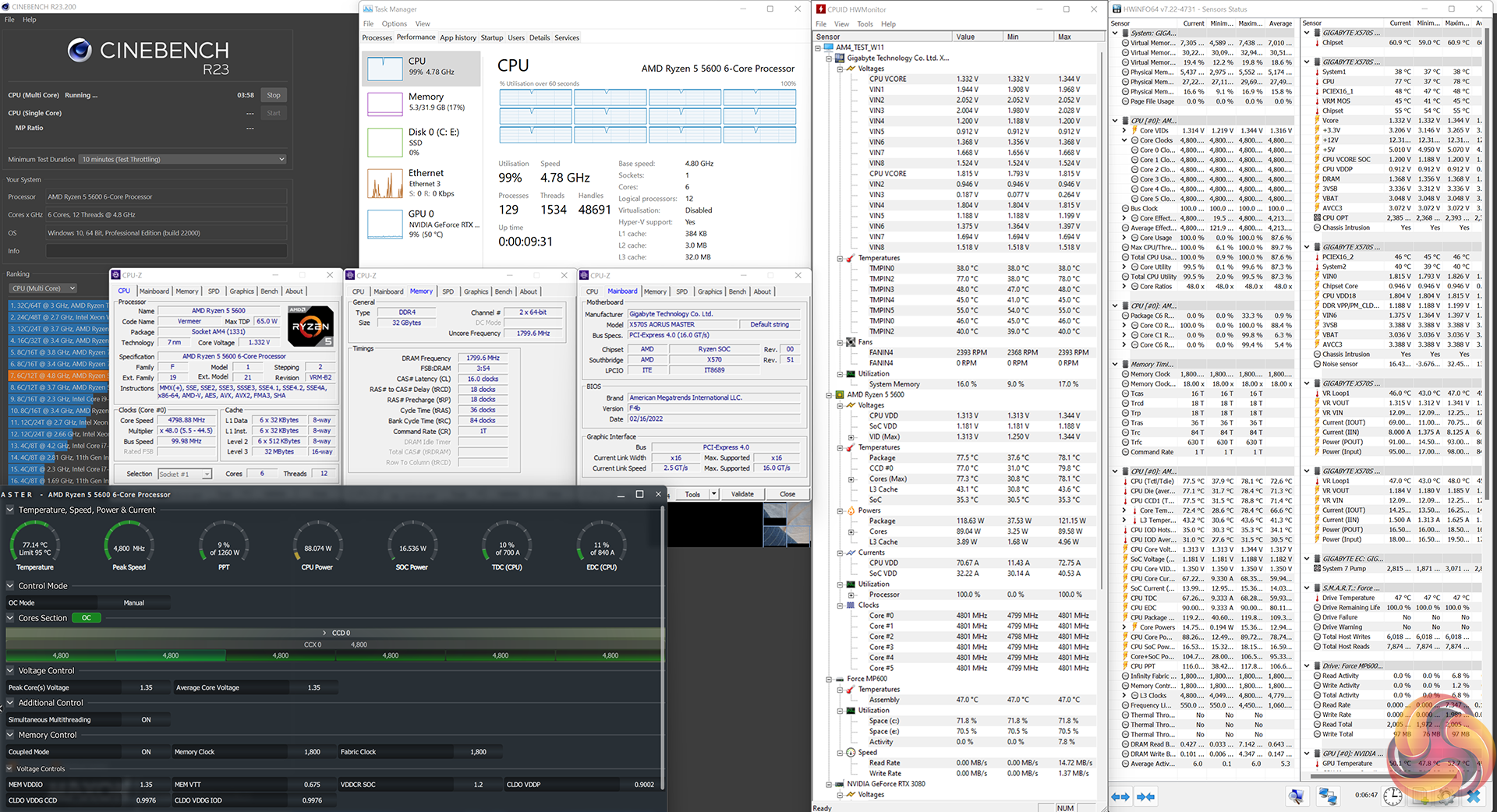 The Ryzen 5 5600 could be pushed to 4.8GHz using the same 1.35V and High LLC. Once again, this is the same frequency that our early Ryzen 5 5600X sample managed.
