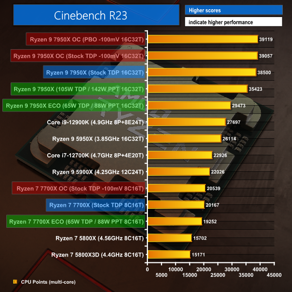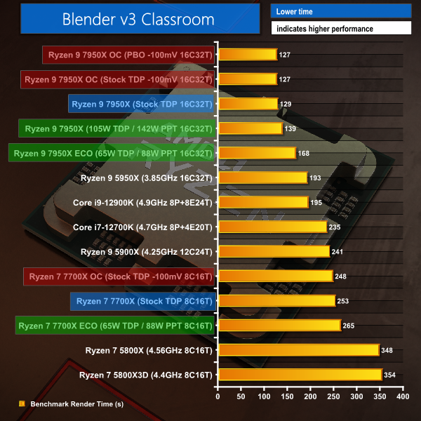 For the reduced power modes, we set the Ryzen 9 7950X at 105W TDP and 65W TDP.