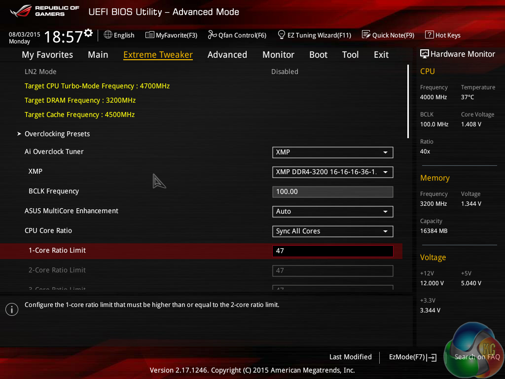 In order to make a direct comparison with our 4.7GHz Devil's Canyon chip, we decided to run our Core i7-6700K testing at 4.7GHz. This used the same settings as the 4.8GHz profile mentioned about – 1.40V Core voltage, level 5 LLC, and removed power thresholds.